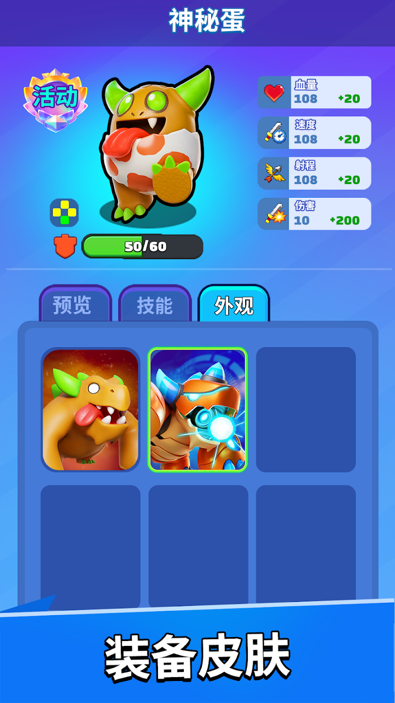 收集数十种独特卡牌来扩充你的卡组,每张卡牌都可多次升级并在3级时解锁超强大招!