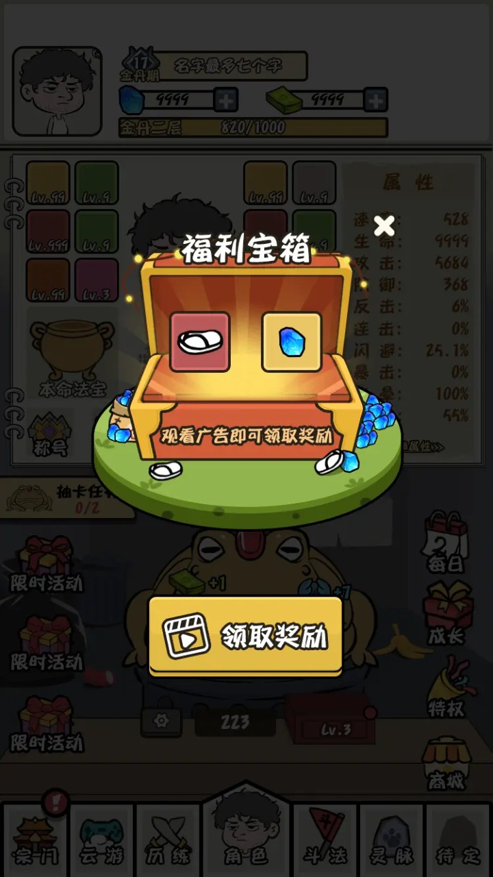——这个游戏基于独特的世界观,融合了修仙元素和开宝箱机制,玩法新颖、有趣刺激。