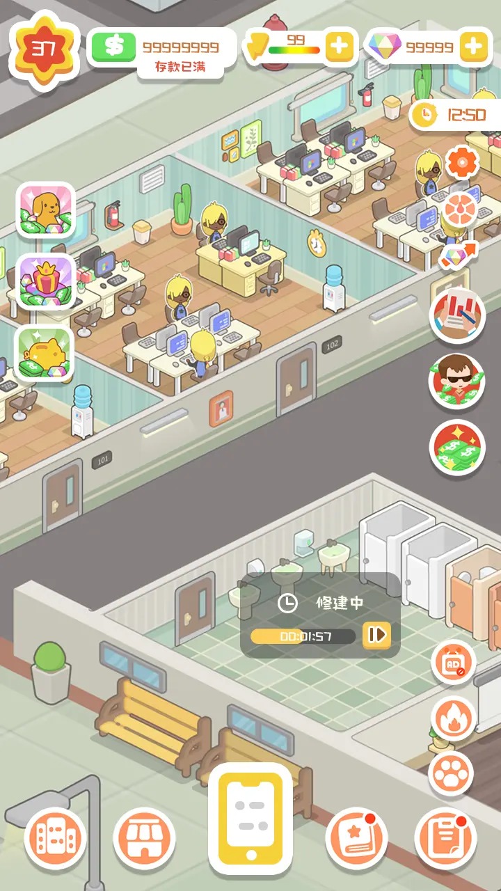 在狂点大作战里,你可以自由地经营自己的物业公司,打造更豪华的办公环境,看着小小的写字楼发展成为世界最著名的物业帝国!