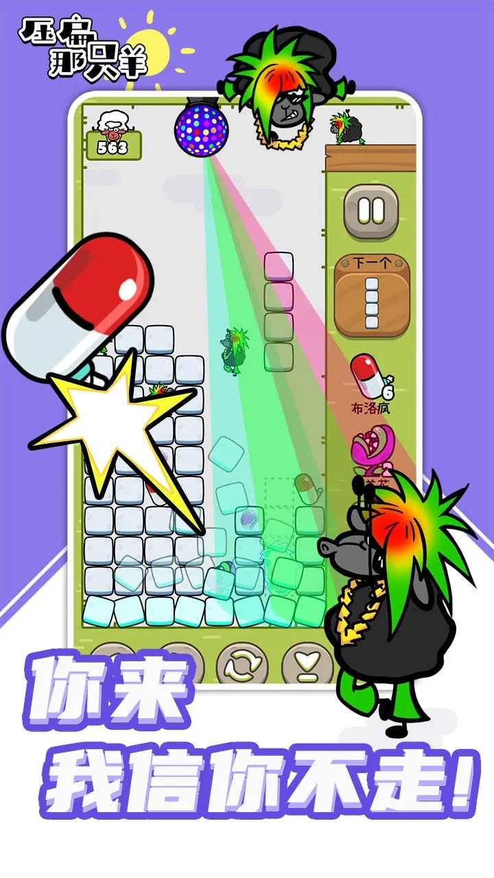 1. 压扁那只羊结合了传统俄罗斯方块玩法,又有动作形态多变,非常机智会闪躲的小绵羊。
