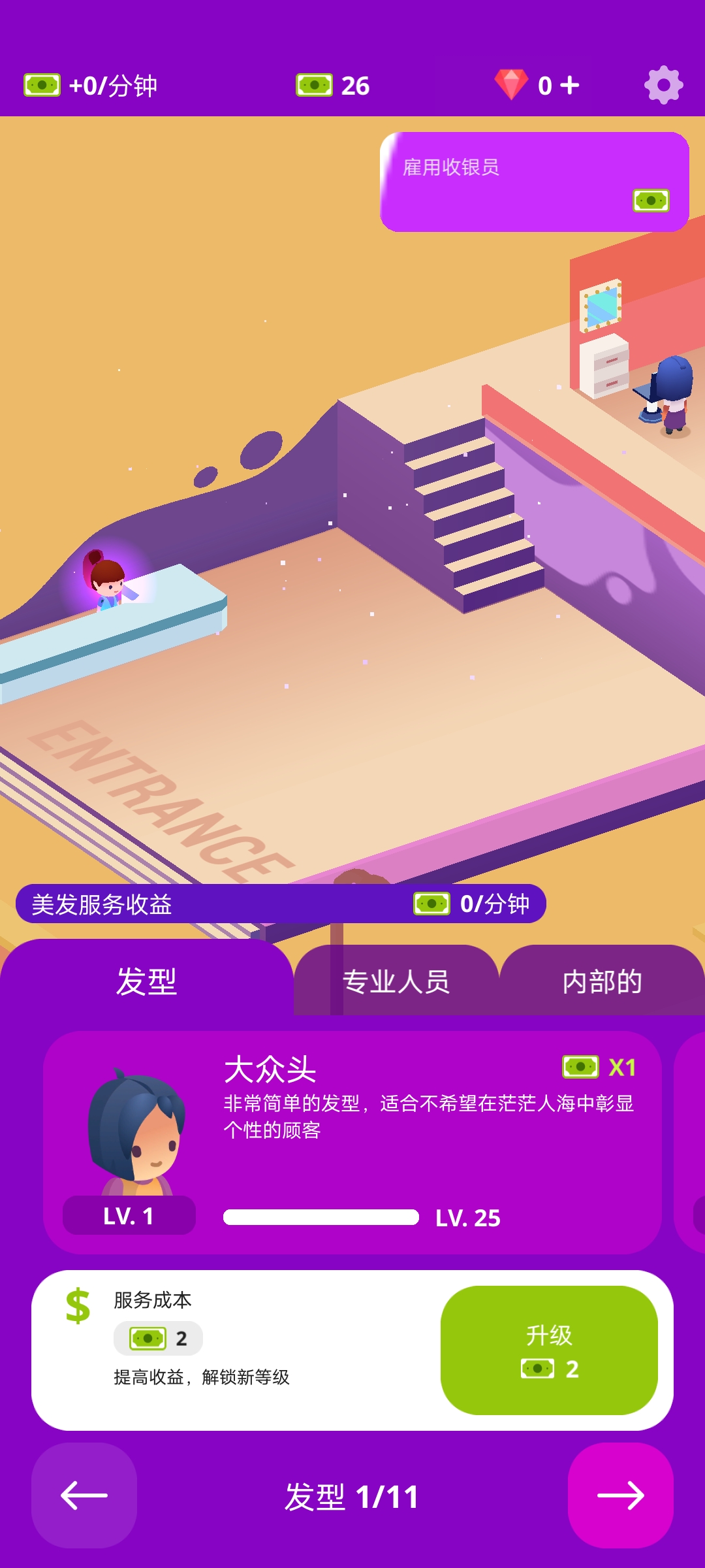 美妆、美发和美甲一直是很受欢迎的服务。开一间属于自己的放置美容沙龙吧,帮助更多人变美丽!先培养几位资深发型设计师,教他们做新发型,提升专业技能。他们设计的发型越时髦,你就能赚越多钱。让你的资深发型设计师和理发师成为最顶尖的造型师!美甲设计和美甲艺术是任何一间时尚美容沙龙不可或缺的一部分。来到这里的顾客都希望自己的指甲被修得美美的,再涂上漂亮的指甲油。你的美甲师一定能帮助他们,同时为你的放置美容沙龙带来丰厚的利润。别忘了雇用并升级你的收银员。顾客们可不爱花时间排队结帐。只要顾客对你的服务满意,就会口耳相传介绍更多客人来,让你的业绩蒸蒸日上。身为一个优秀的店经理,你一定懂得要拓展业务范围。何不将美容沙龙升级成SPA会馆呢?美容美甲都无法取代身体健康。在您的美容沙龙中开设按摩养生馆,让你的顾客变美的同时也变得更健康。从经营一间小小的美容沙龙,到建立你的时尚帝国,你将成为这个放置模拟游戏中最成功的企业家!