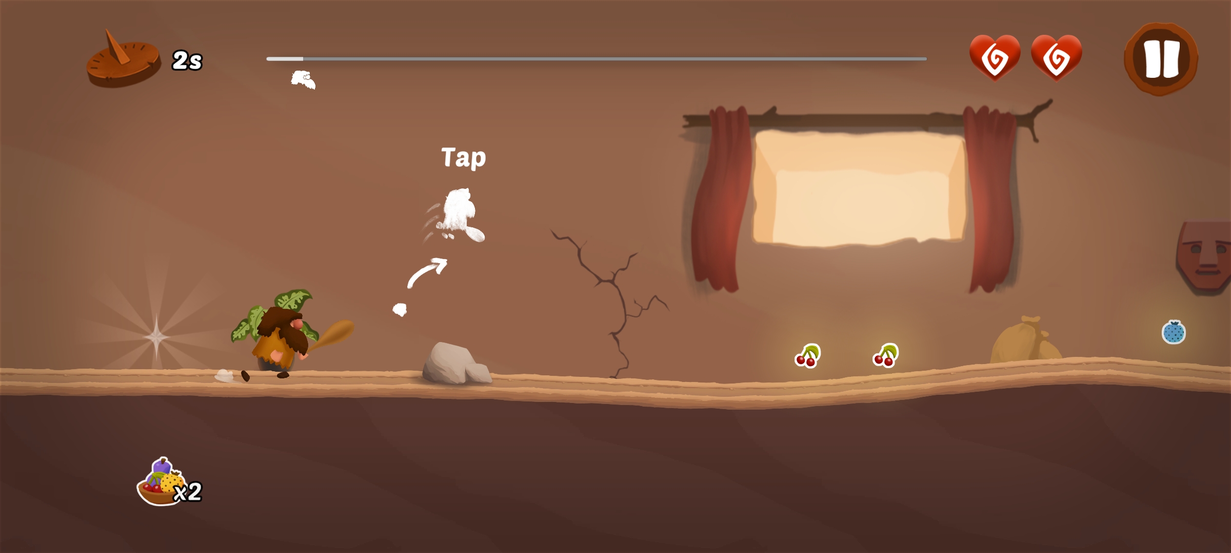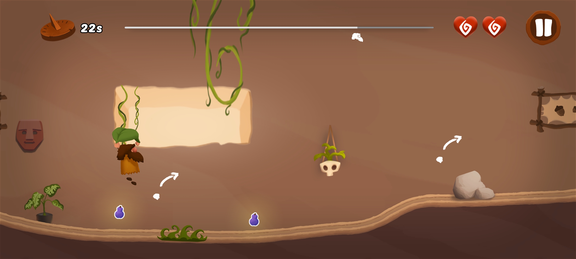 在这个石器时代的跑步者/平台游戏中,存在着许多危险,有些是现实的,有些则是奇幻的,但是所有这些都应该避免,无论是逃离它们、撞到它们还是跳开。
