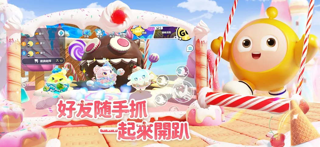 派对时间到!在这里,你可以找到许多可爱Q萌的蛋仔,一同登上巨型摩天轮俯瞰蛋仔岛、搭乘喷射小飞机空中遨游,更有弹力蹦床、钢琴地毯等超多游乐设施,一起来开趴吧!