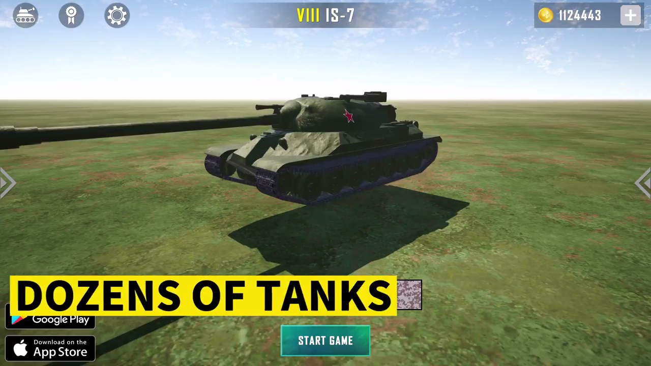 坦克模拟游戏,具有由真实物理引擎驱动的轨道和装甲损坏系统。数十种不同的二战坦克,如虎式 II、鼠、T-54、is-7、T95、M60等。