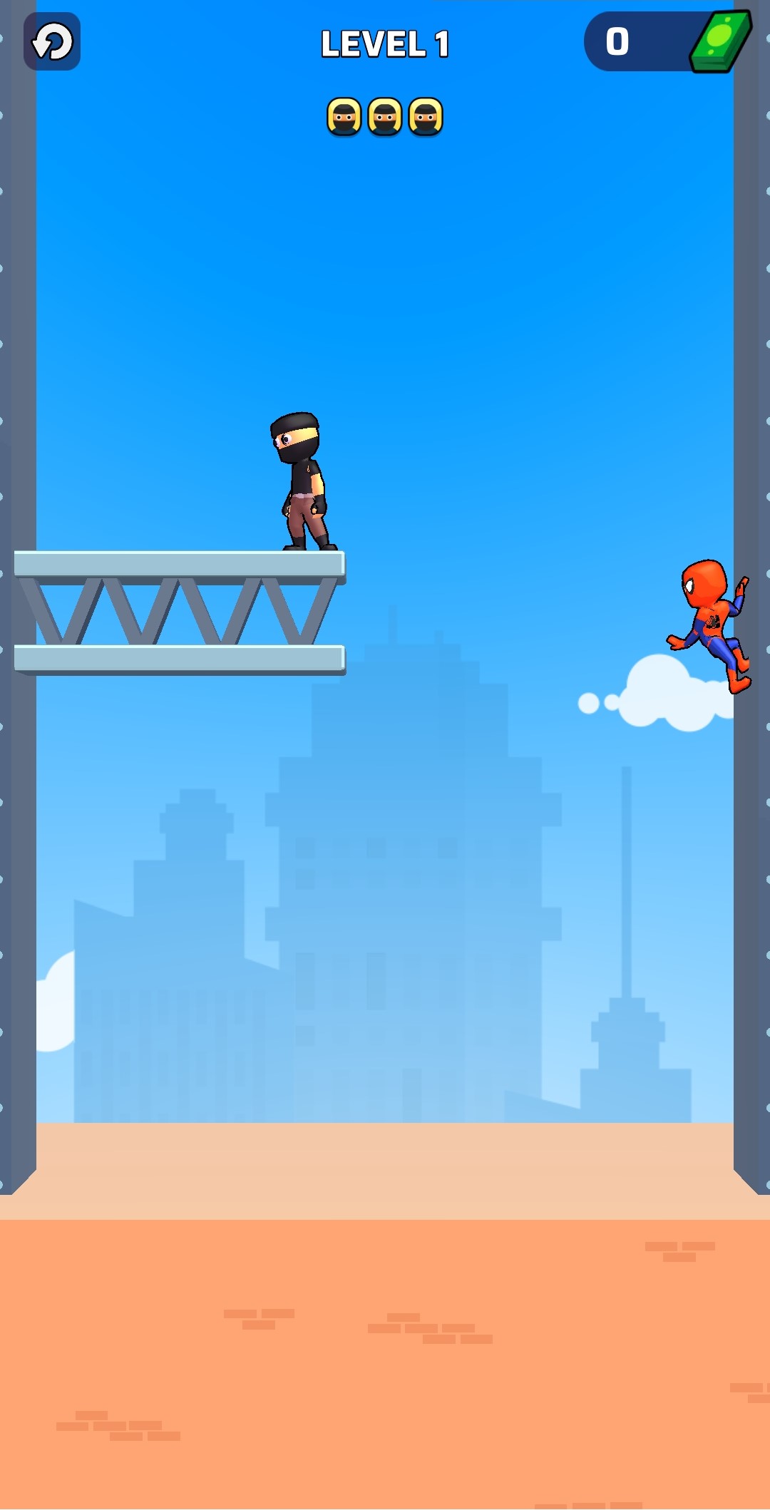 在这款激动人心的移动超休闲游戏中,你将扮演一名英勇的火柴人,他掌握了射网和瞬移到不同地点的艺术。凭借可靠的蜘蛛网射击能力,你必须通过一系列具有挑战性的障碍,摧毁路上的敌人。