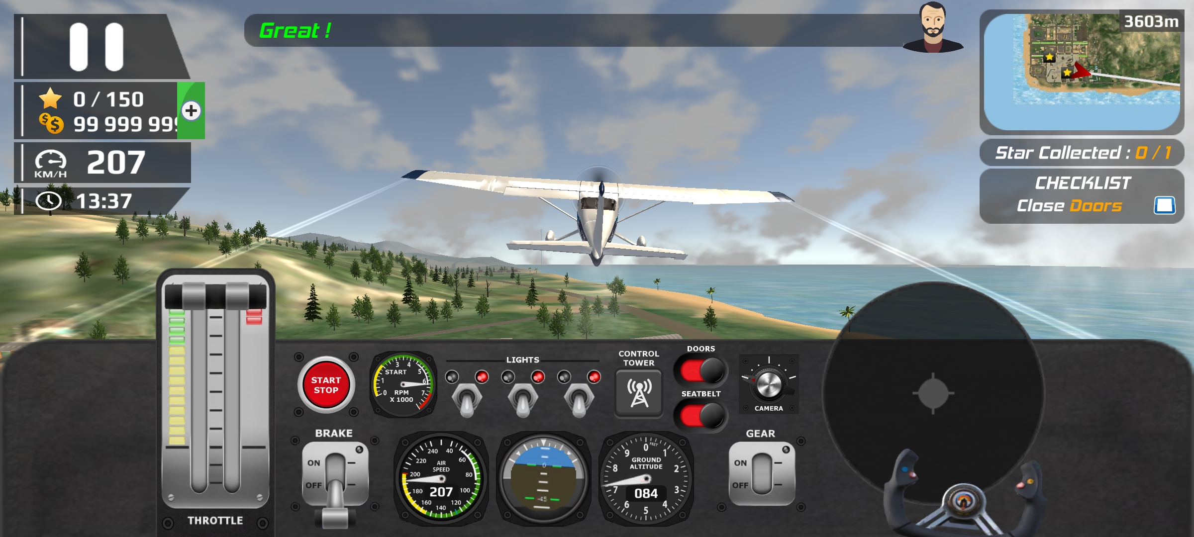 乘坐真正的飞机穿越大规模详细的开放式飞行模拟器。通过卫星地图,3D建筑,跑道,空中交通,天气条件和真实的体积云探索高分辨率的风景和机场。
