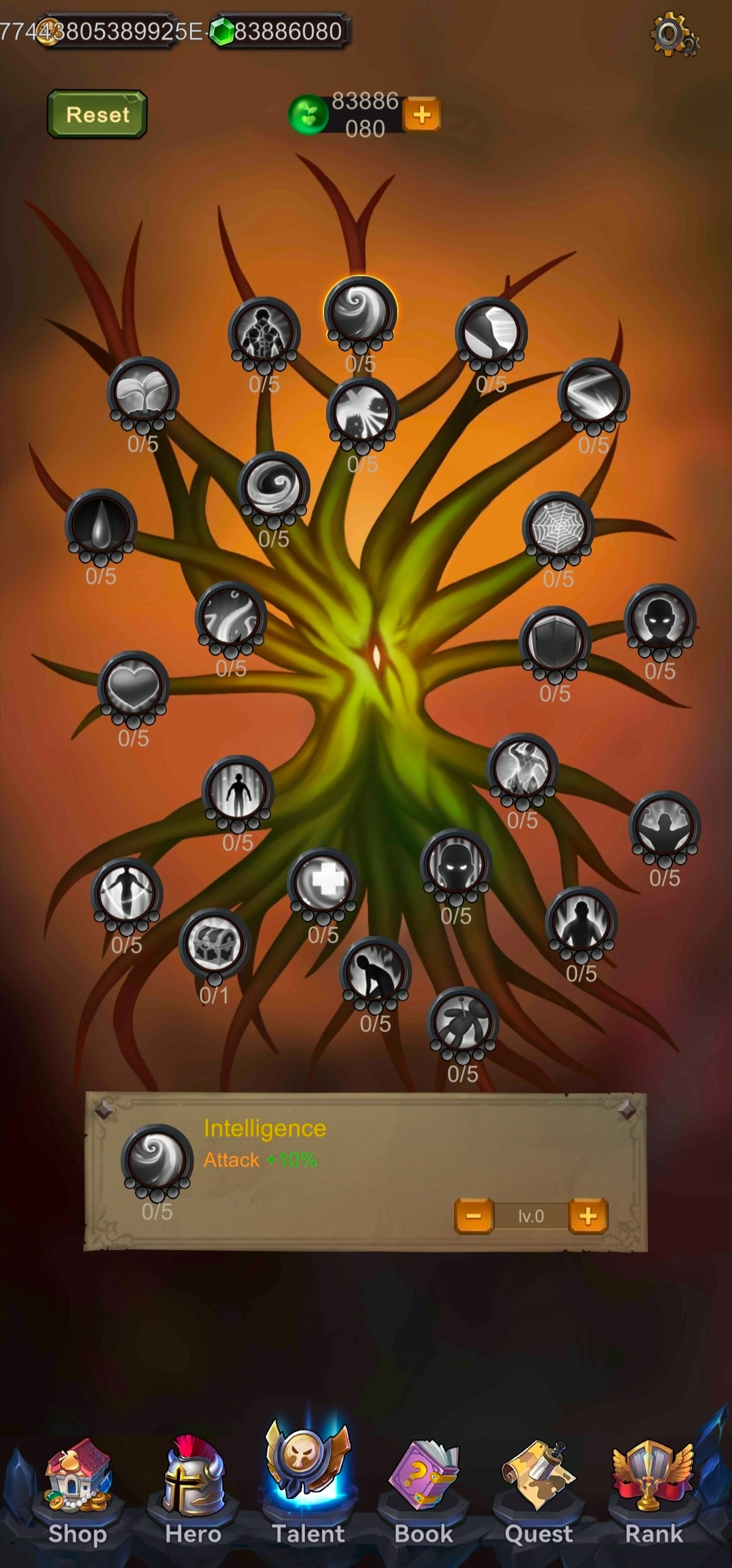 每次升级,从三个候选技能中获得一个技能。尝试不同的技能组合并使用最佳技能组合策略来生存。