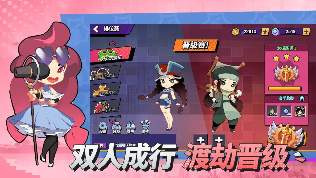 【多游戏集合】 为了游戏的对战满足更多玩家,游戏内提供了广为人知且能轻松上手的休闲游戏供各位斗士选择,比如《俄罗斯方块》、《疯狂的伐木工》、《三消游戏》等等。我们在保留它们的原汁原味玩法的基础上还做了更炫酷的包装,各位斗士快来一探究竟吧~