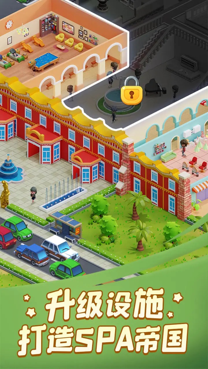 - 经营店铺,服务客人,解锁不同区域、设施和建筑,一步步建立您的 SPA 帝国!