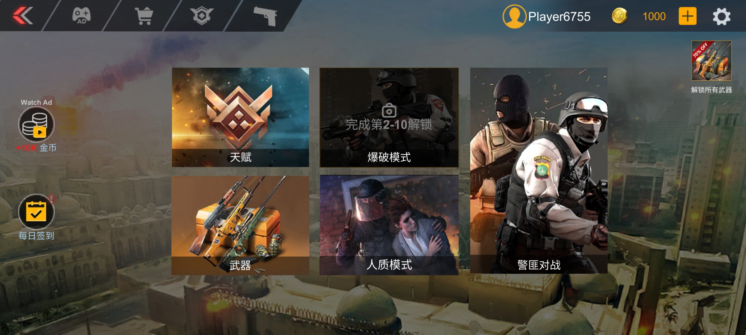 * 各种不同的武器:例如AK-47、M4、AWP、MP5、巴雷特、M16以及众多不同的枪支和手榴弹,让您体验枪支的疯狂快感。