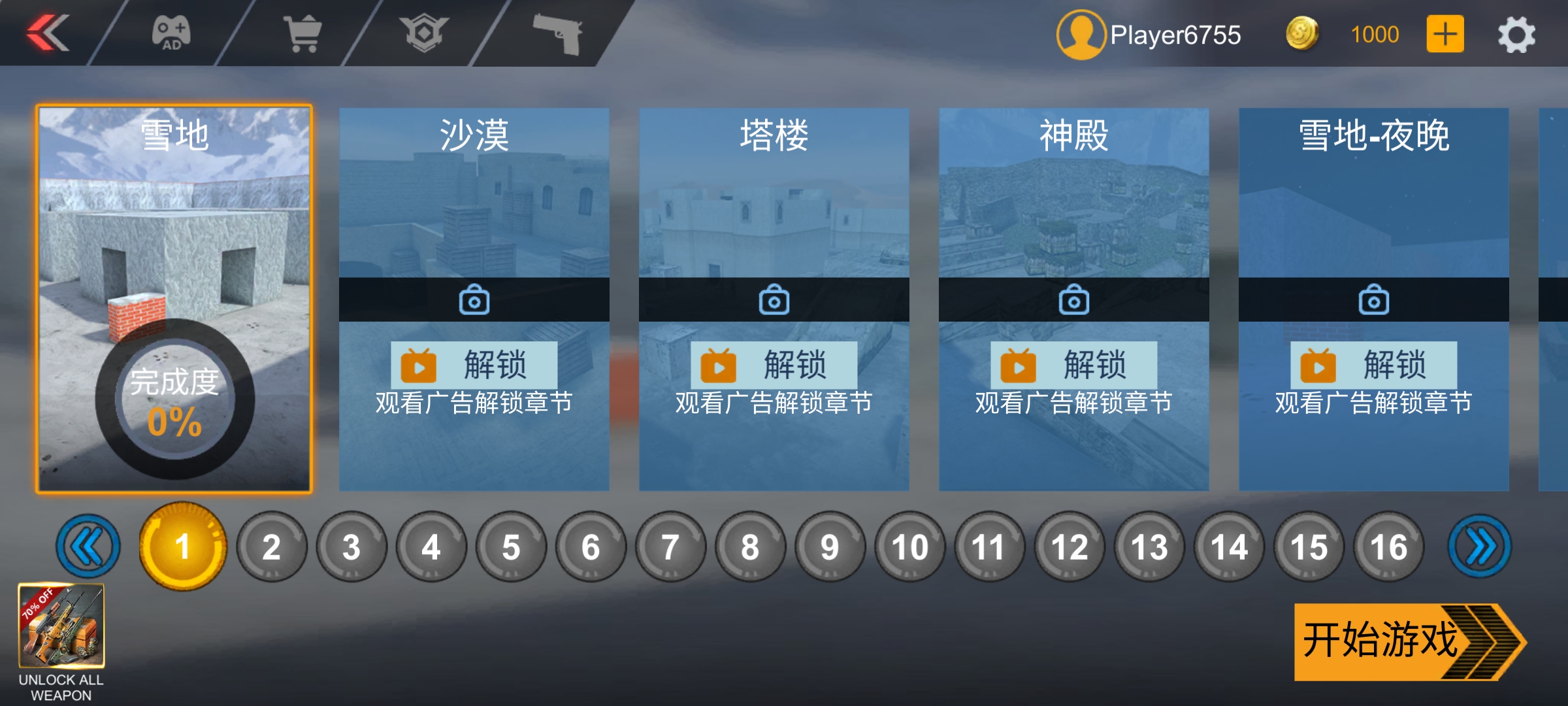 * 多种地图场景:积雪覆盖的雪景、灰尘、室外绿地场景。
