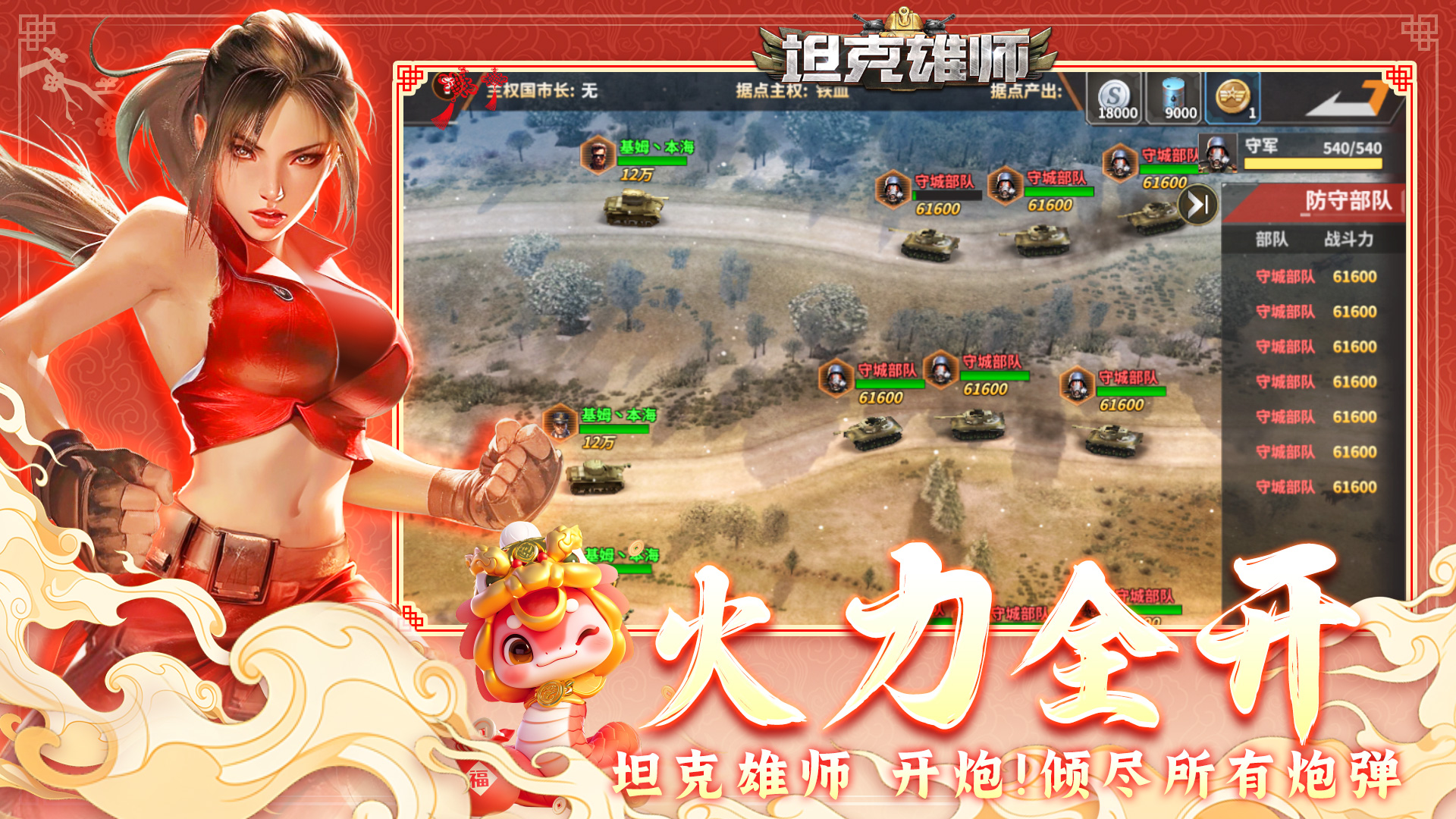《坦克雄师》是一款坦克题材策略手游,玩家可在游戏中获得自己的领地,在广袤的大陆上建立一座全现代化的作战基地,组建作战部队提升实力,控制足够多的资源点,同时还可以进行领地结盟、争夺地区霸主。
