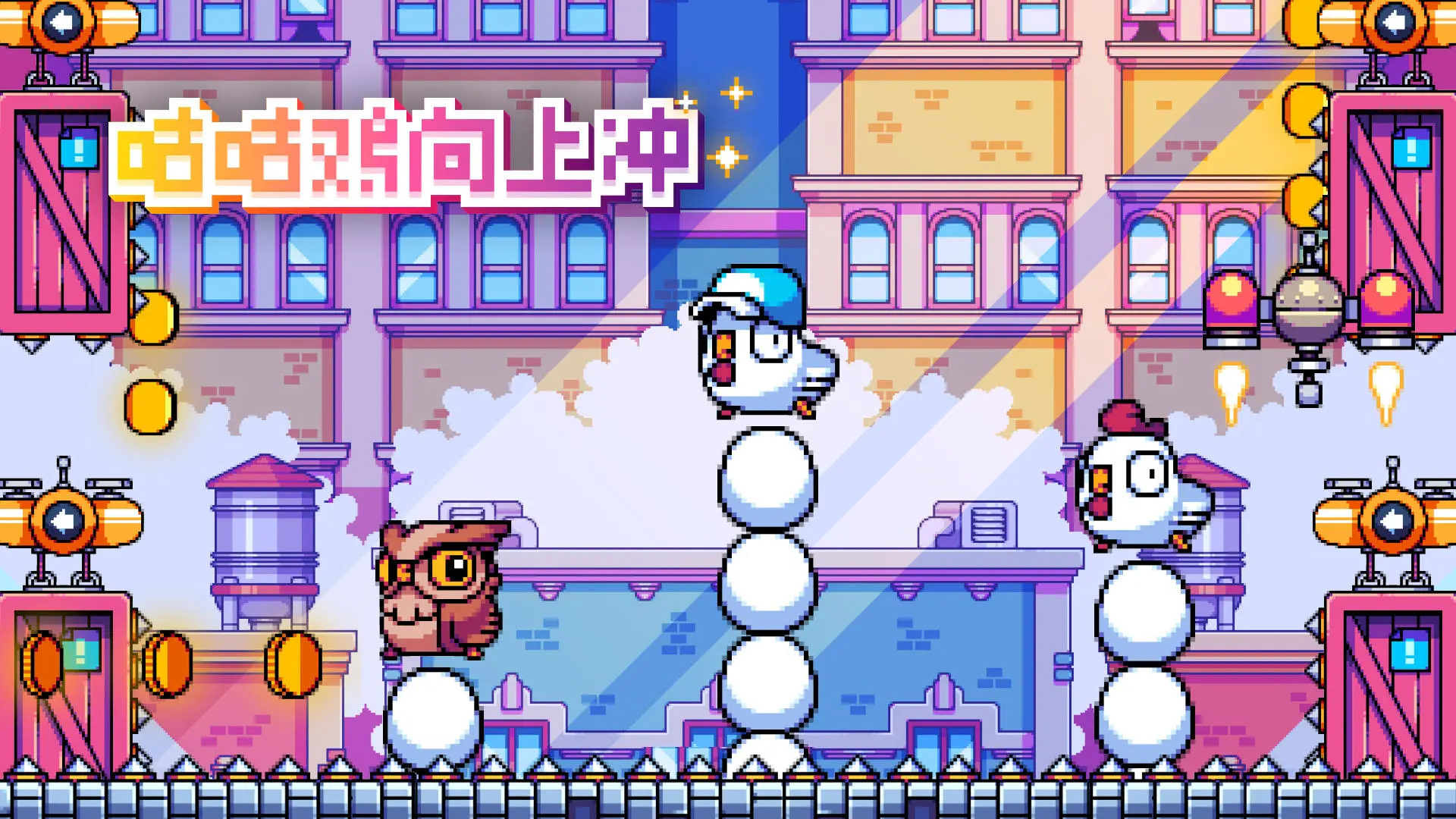 咕咕鸡向上冲是一款操作简便(玩家只需要点击和左右滑动,向上跳跃躲避障碍)&魔性十足的休闲游戏。