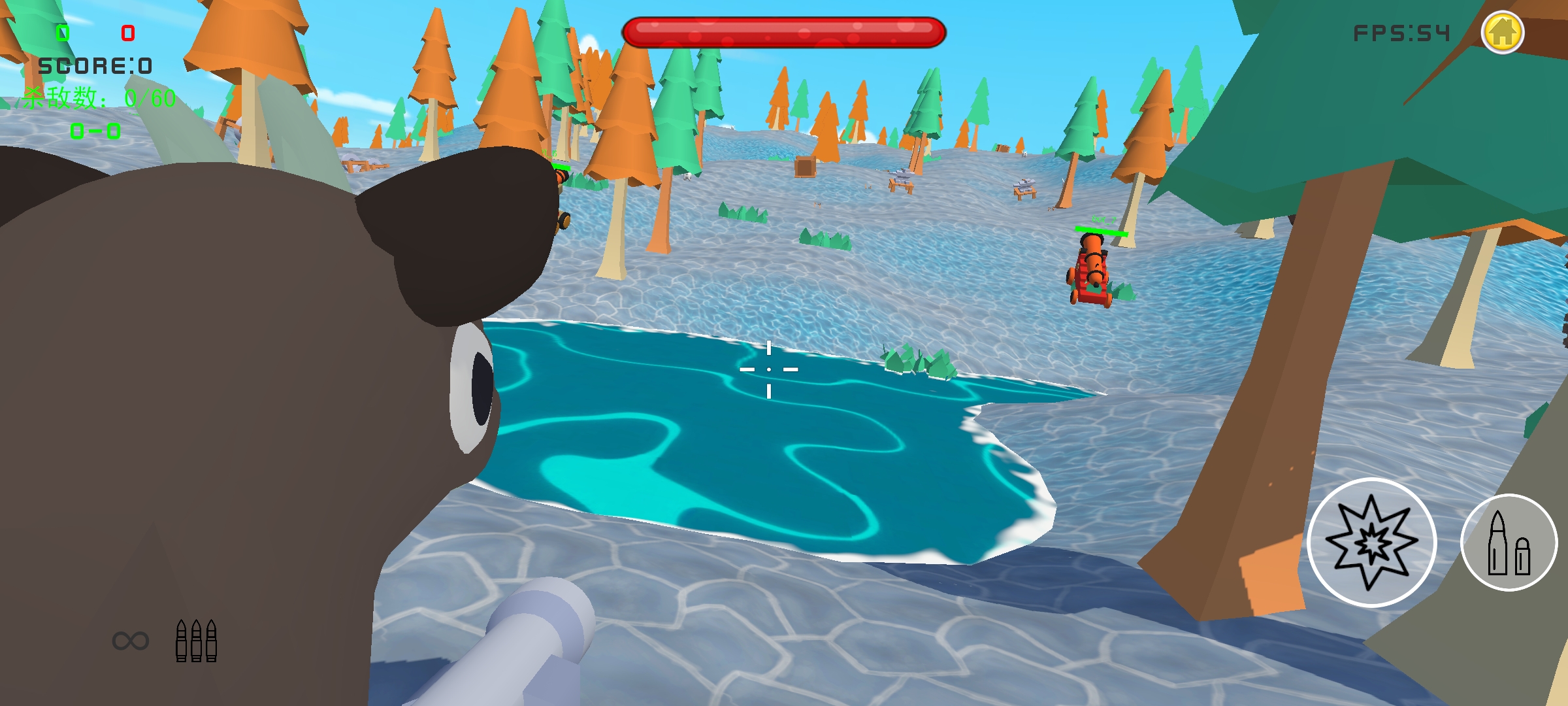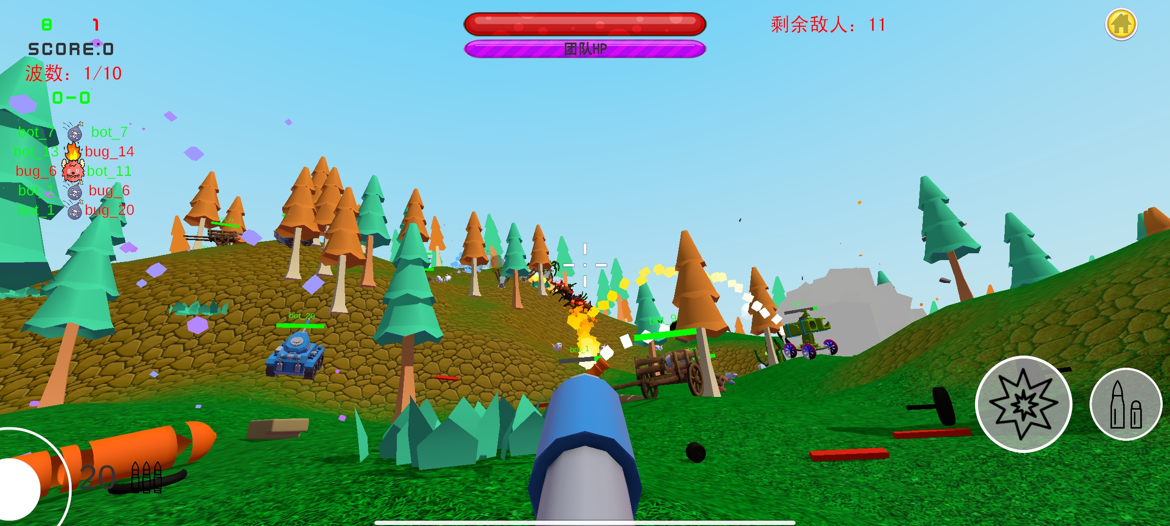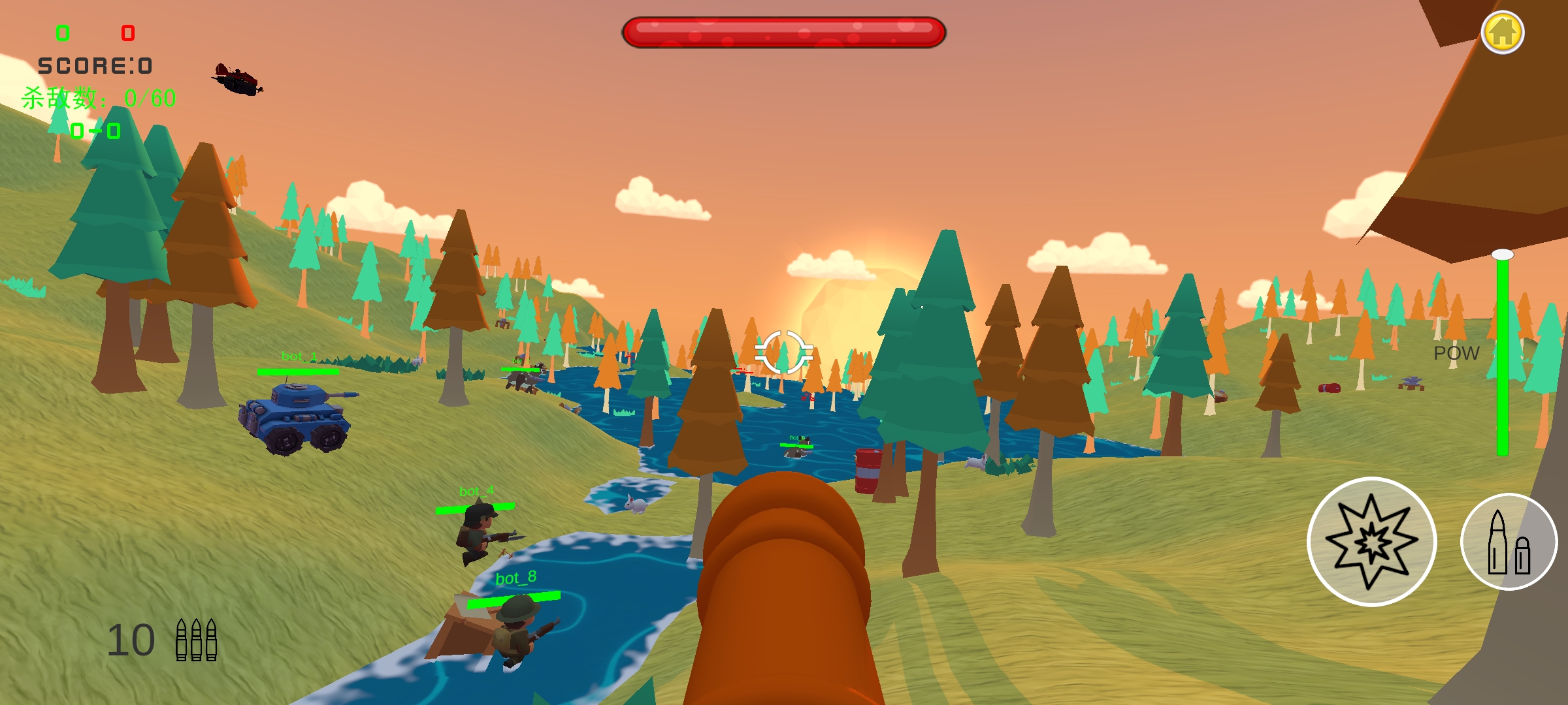 《战区前线》是一款3D射击模拟类游戏,多种武器你可以随意使用(坦克、加农炮、士兵、喷火冲鹿、火箭冲车),每种都有不同的操作手法和技巧,选择强大的武器开启最真实的战斗,可破坏的地形,合理运用地形优势,并获得胜利!