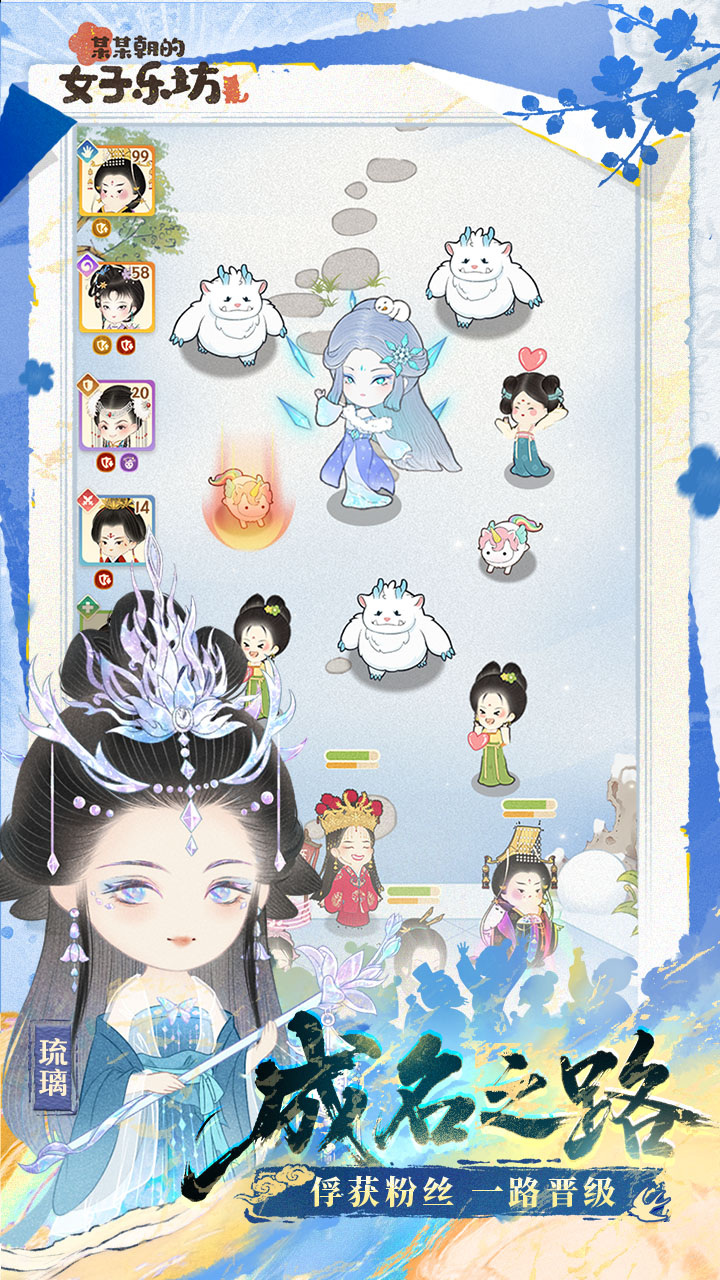《某某朝的女子乐坊》是一款架空历史题材的Q版国风模拟经营养成游戏。在游戏中,你将化身为女子乐坊的坊主,自由搭建乐坊布局,建造独一无二的女子乐坊,将各色美人尽收麾下,培养各种漂亮小姐姐,培养我朝第一女子天团,踏上成名之路。