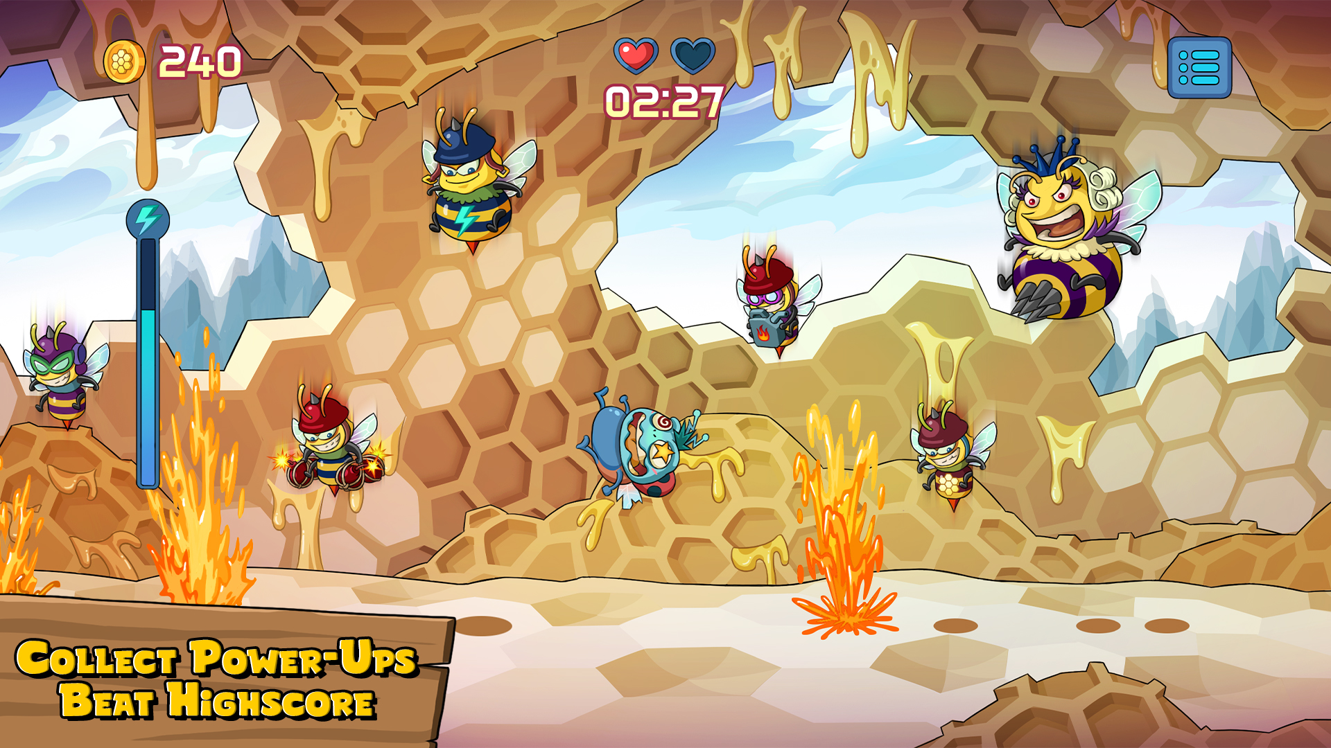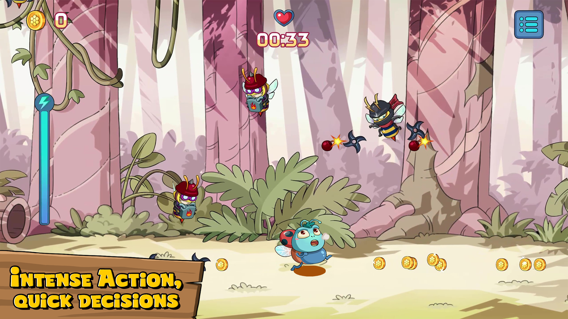 瓢虫雅各布不小心打扰了大黄蜂女王急需的美容睡眠。现在,她指挥她的军队寻求报复。你的工作是帮助雅各布躲避无数从天而降的大黄蜂浪潮,并收集特殊物品。