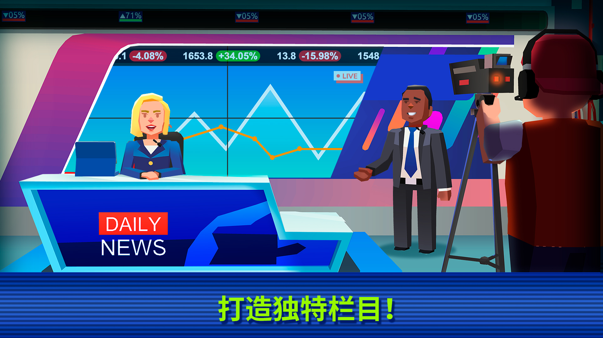 优秀的管理者必拥有优秀的发展策略。升级每个部门,为员工提供更好的工作条件。专注改善播出质量,为观众带来高品质节目。购置更棒的道具,发布精彩的肥皂剧、惊喜的真人秀以及百万富翁问答秀。