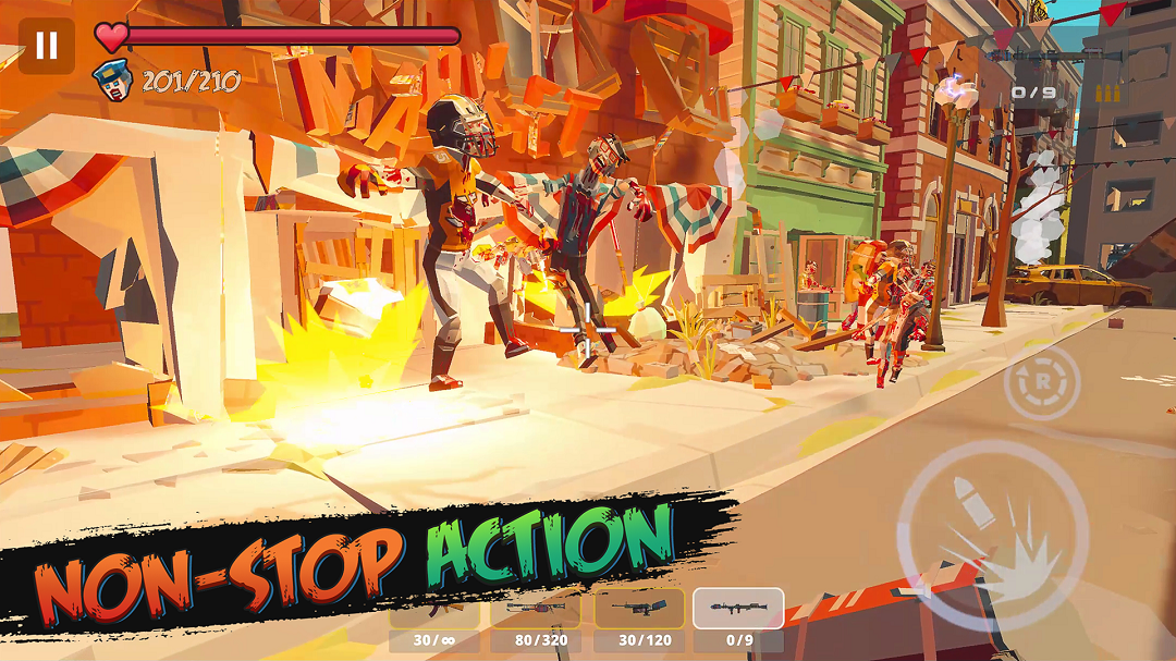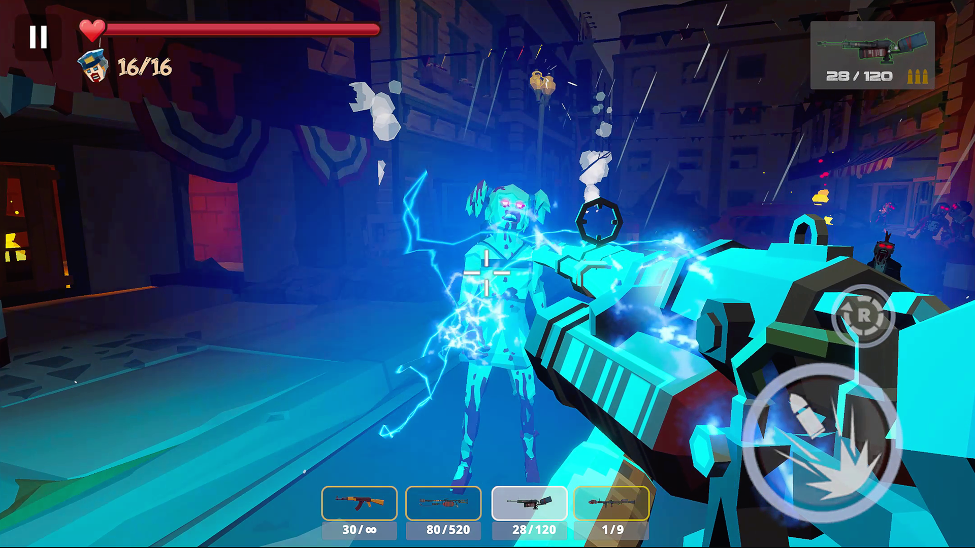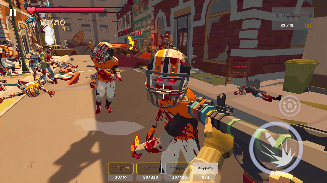 Zombie Poly - 一款令人上瘾且有趣的移动离线僵尸游戏。你在这个僵尸游戏中的任务是在僵尸末日中生存。收集更多枪支并提高射击技能可以帮助您杀死所有僵尸并更快地通过关卡。