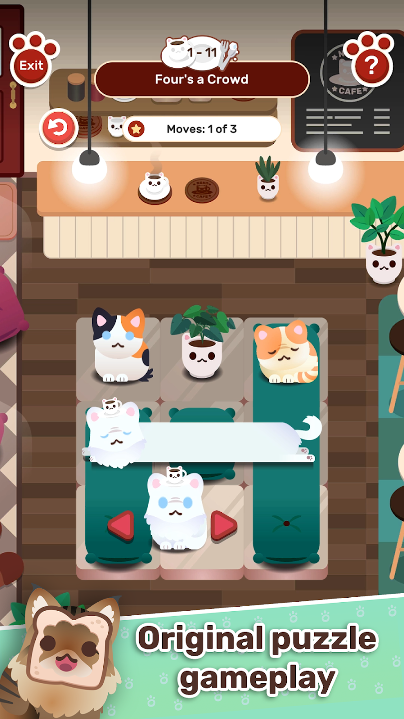 移动猫和垫子,让每只小猫都自在舒适。但是有一个插曲!猫只左右移动,垫子只上下移动。