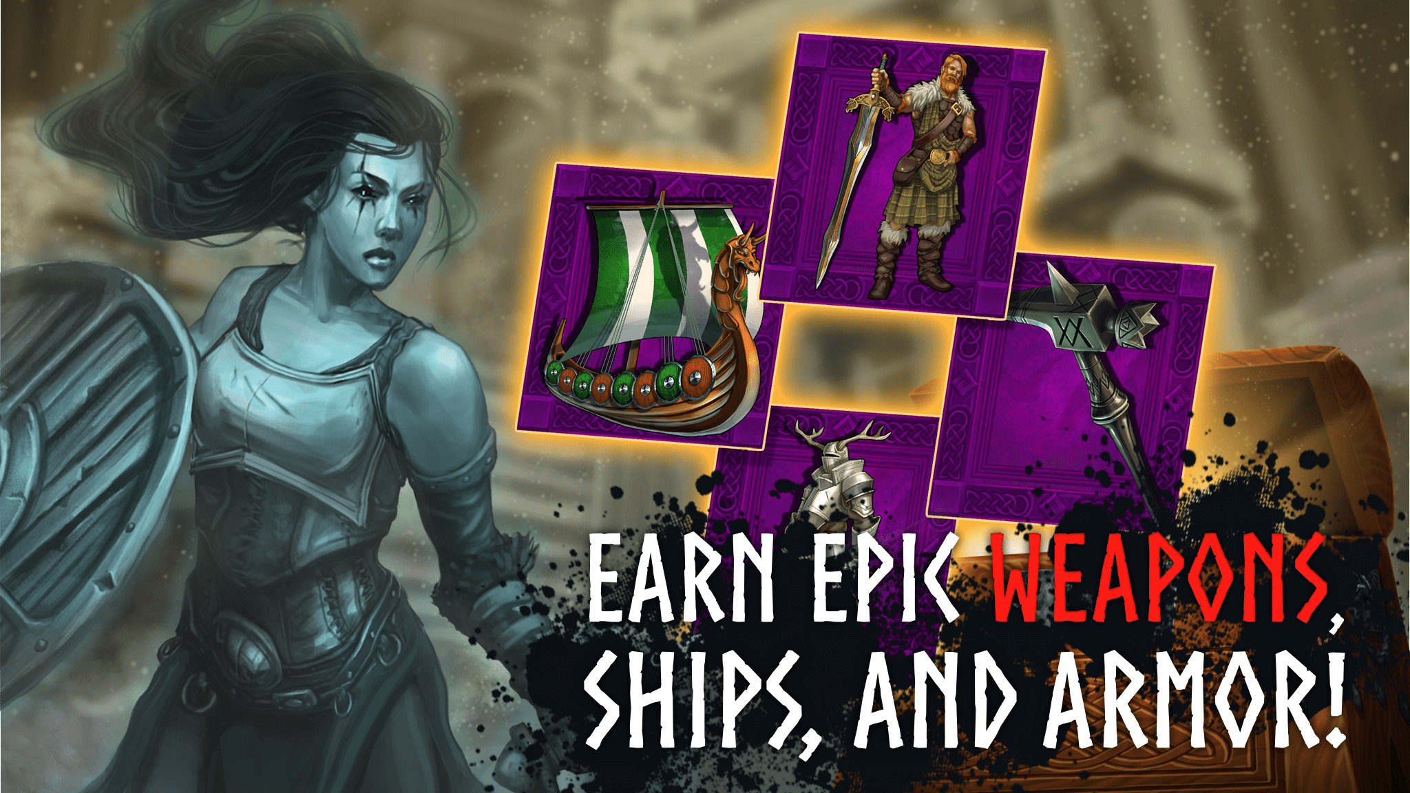 明智地选择你的武器、盟友和战斗。在这个在线社交维京文字角色扮演游戏中,建立一个穿越时间的维京帝国。挑战对手,杀死野蛮的野兽,掠夺村庄,掠夺公海并前往海洋边缘!