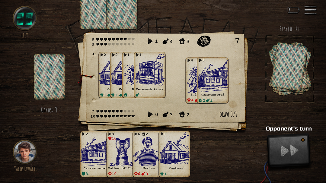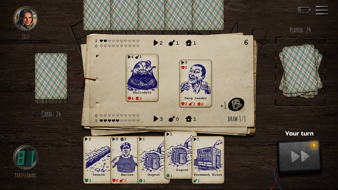 该游戏具有简单而复杂的规则集、原创卡牌设计,并且没有付费赢取卡牌收集元素或战利品箱! 所有玩家都来自同一副牌,因此只有您自己的策略、战术、智慧和运气才能决定您的输赢!