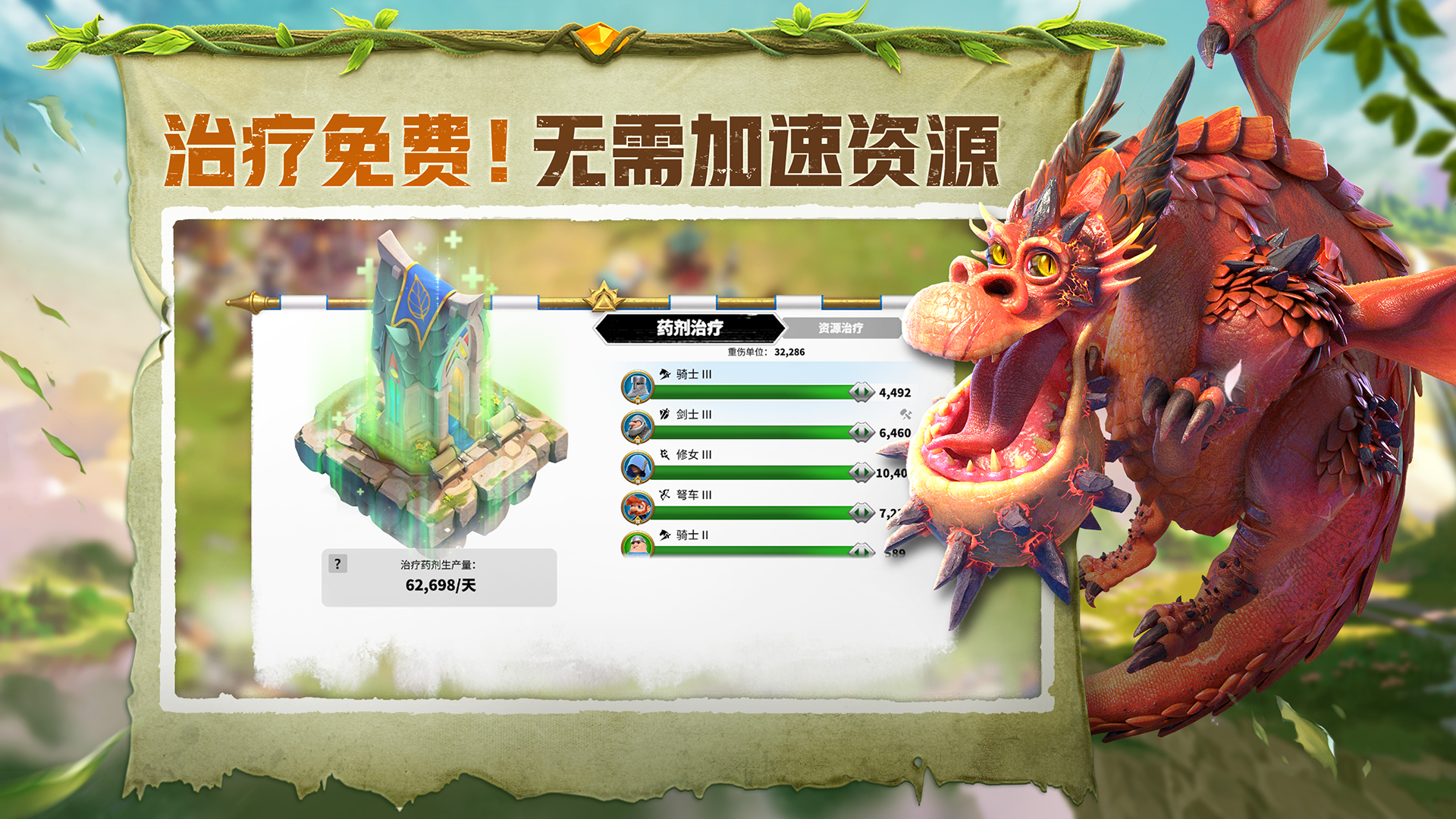 为了让勇士们没有后顾之忧,《万龙觉醒》提供完善医疗机制。每一位受伤的士兵,都可以免费使用自动生成的药剂,一键恢复战斗力,再次投入到激烈的战场中。同时为了减少各位领主的重复性操作,自动刷野,自动捕捉,自动采集,自动开图等全新自动化功能已加入《万龙觉醒》,解放双手,畅爽战斗!