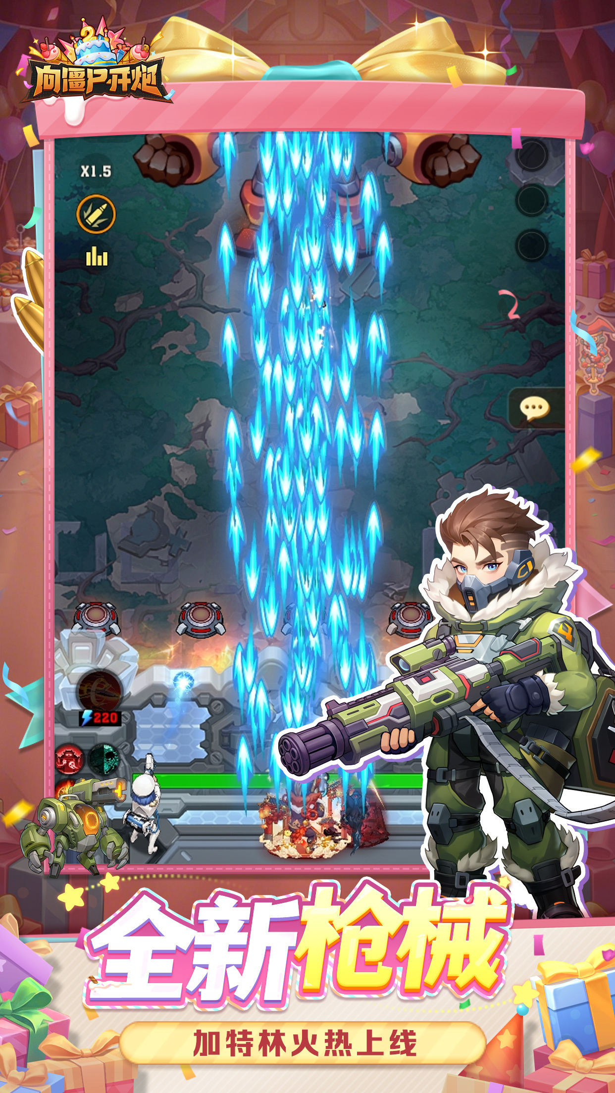 《向僵尸开炮》是一款制作精良、画风独特的射击Roguelike手游。故事背景设定在未来时代,某日天灾席卷地球,生化感染迅速折张使得僵尸横行,自然资源与科技文明受到重创;为了保护人类与重建地球家园,玩家将扮演一名优秀的先锋官,与僵尸展开激烈的战斗。