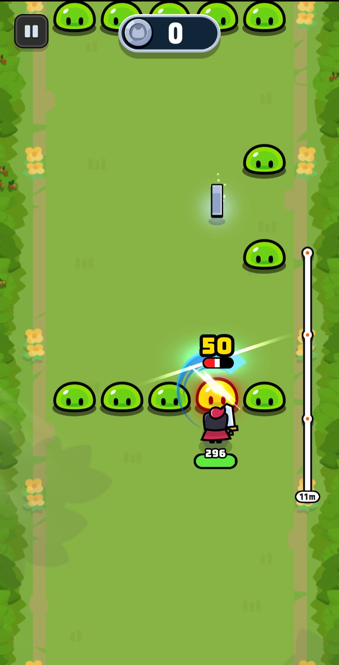 切开挡住你去路的史莱姆,然后继续奔跑!