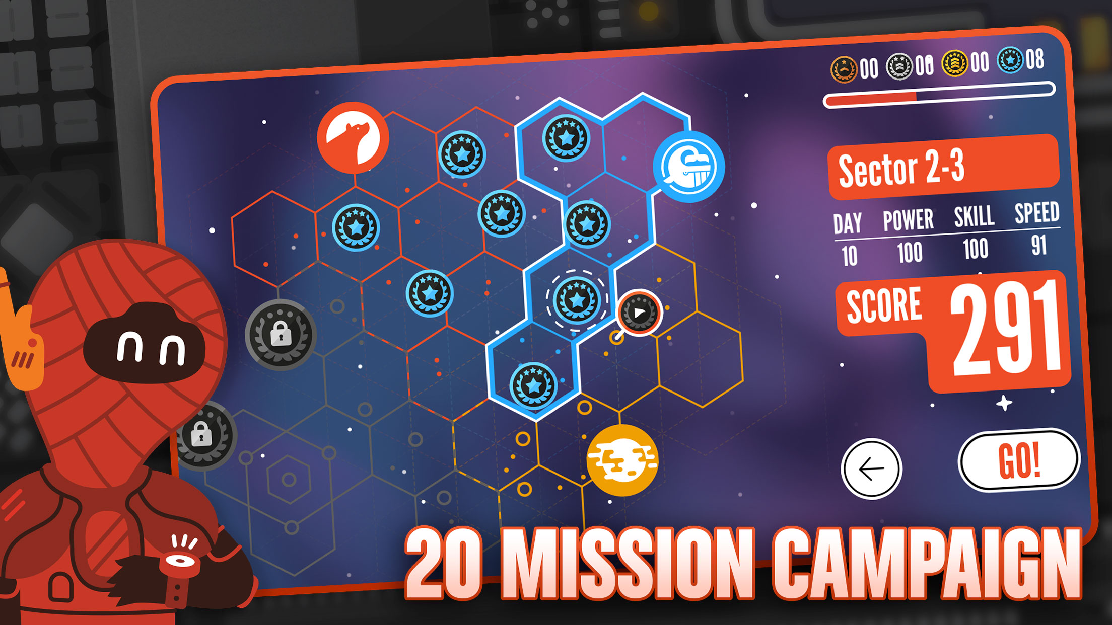 战役 - 在 5 个独特环境中完成 20 个任务,解开功能失调的星系和旨在拯救它的战争模拟器的故事。