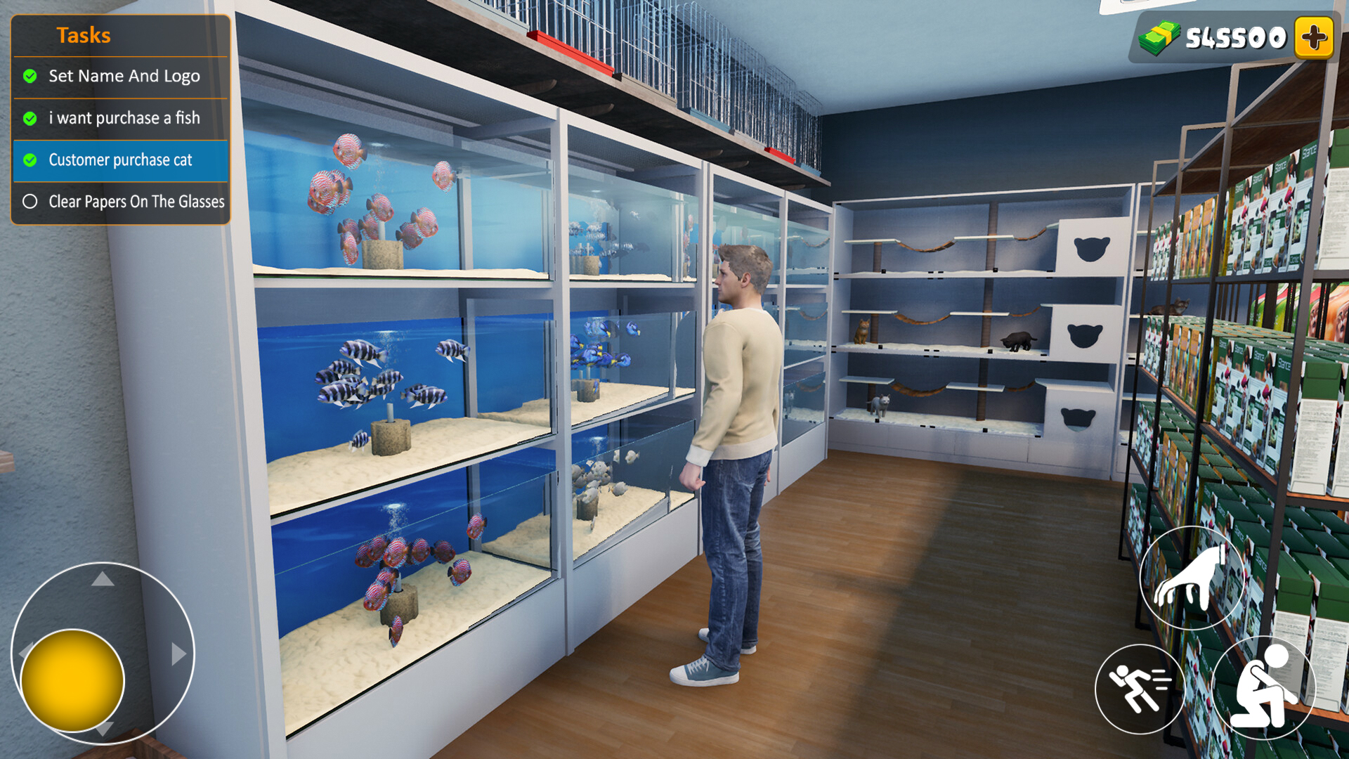 在《宠物店模拟器》中经营宠物店!寻找动物收容所和宠物新家,满足客户的需求。照顾你的四足朋友,为你的宠物找到合适的人,照顾动物的需要。向您的宠物店顾客出售合适的物品,并参与与宠物家庭生活相关的所有事务。