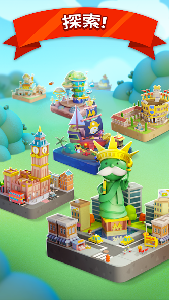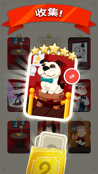 收集各系列的地产方格以建造房子,将房子升级至旅馆,从好友那里获得更多租金!只需点击“GO”!