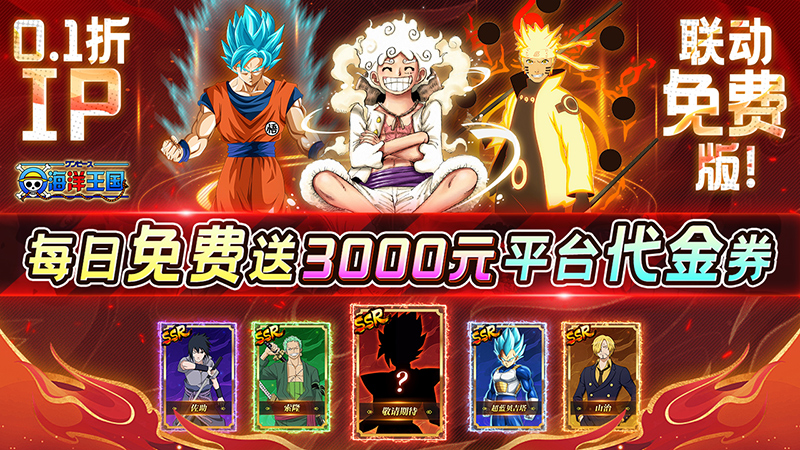 《海洋王国》0.1折IP联动免费版,每天送3000元平台代金券!梦幻联动经典突破!民工漫IP大集结,海贼与龙珠火影联动,更有充值永久0.1折!路飞携手悟空和鸣人,一起寻找伙伴共闯新世界。好激动哦,下个联动人物是谁呢?