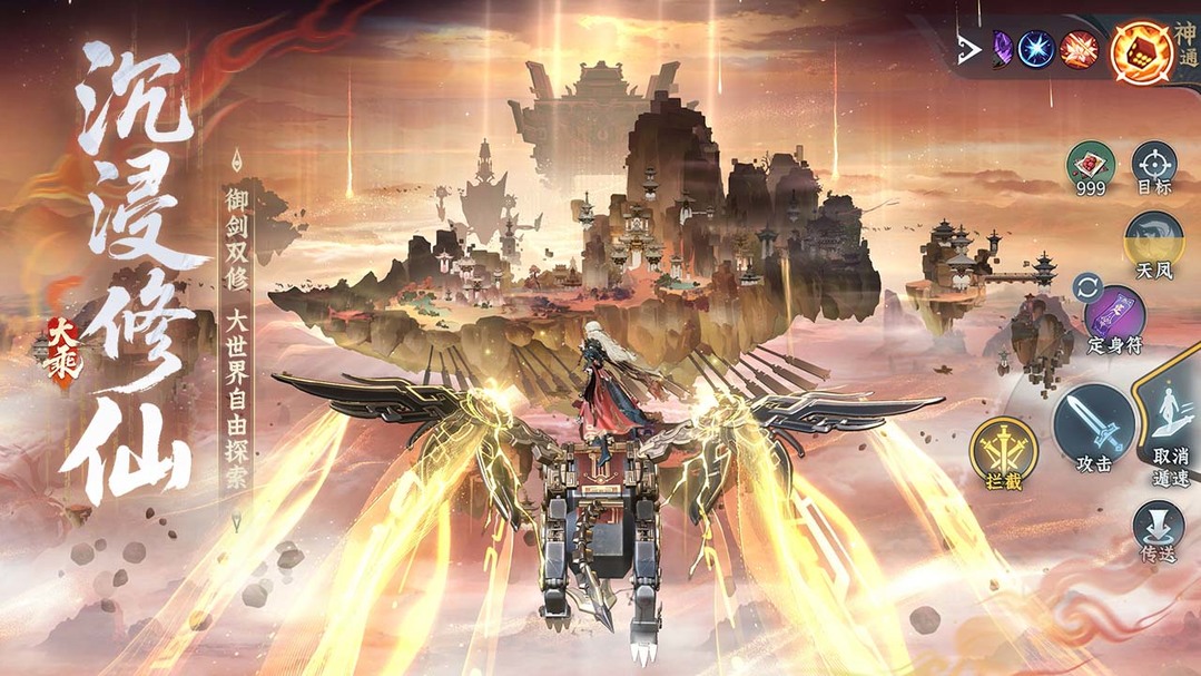 【真3D御剑斗法】你自习得御剑之术,战斗英姿就与真正的仙人一般,或与百丈巨兽在空中腾挪周旋,或参与超过百人的空中斗法;施展真灵血脉、召唤圣兽法相,统御威名赫赫的灵兽和法宝……神通广大,无所不能!
