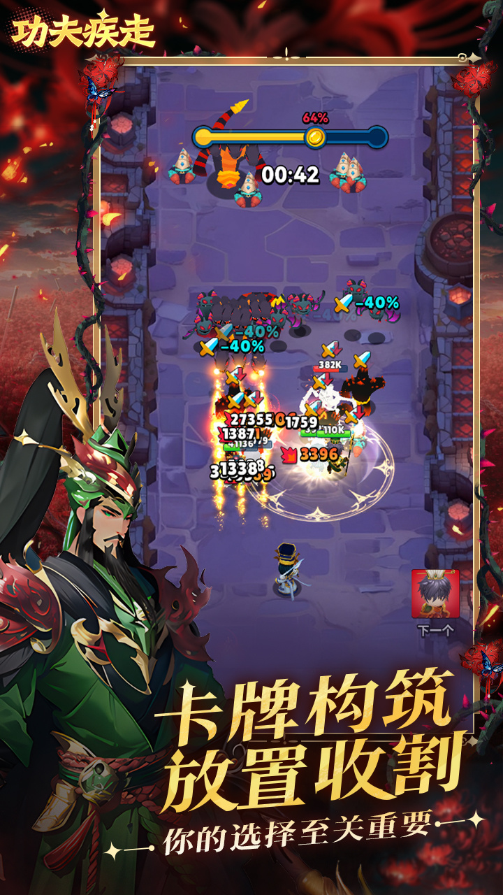 《功夫疾走》是一款,竖屏,3D卡通+三国/西游元素角色的闯关游戏。战斗过程融合rogue元素,以卡牌为养成核心。游戏表现轻松休闲,除了主线闯关外,附加迷宫、竞技场、赏金试炼(金币获取)、征战之路(爬塔)、魔王挑战(PVE排名)、狩猎试炼(PVE排名)、冠军联赛(跨服PVP)、峡谷争锋(跨服联盟PVP)等玩法。
