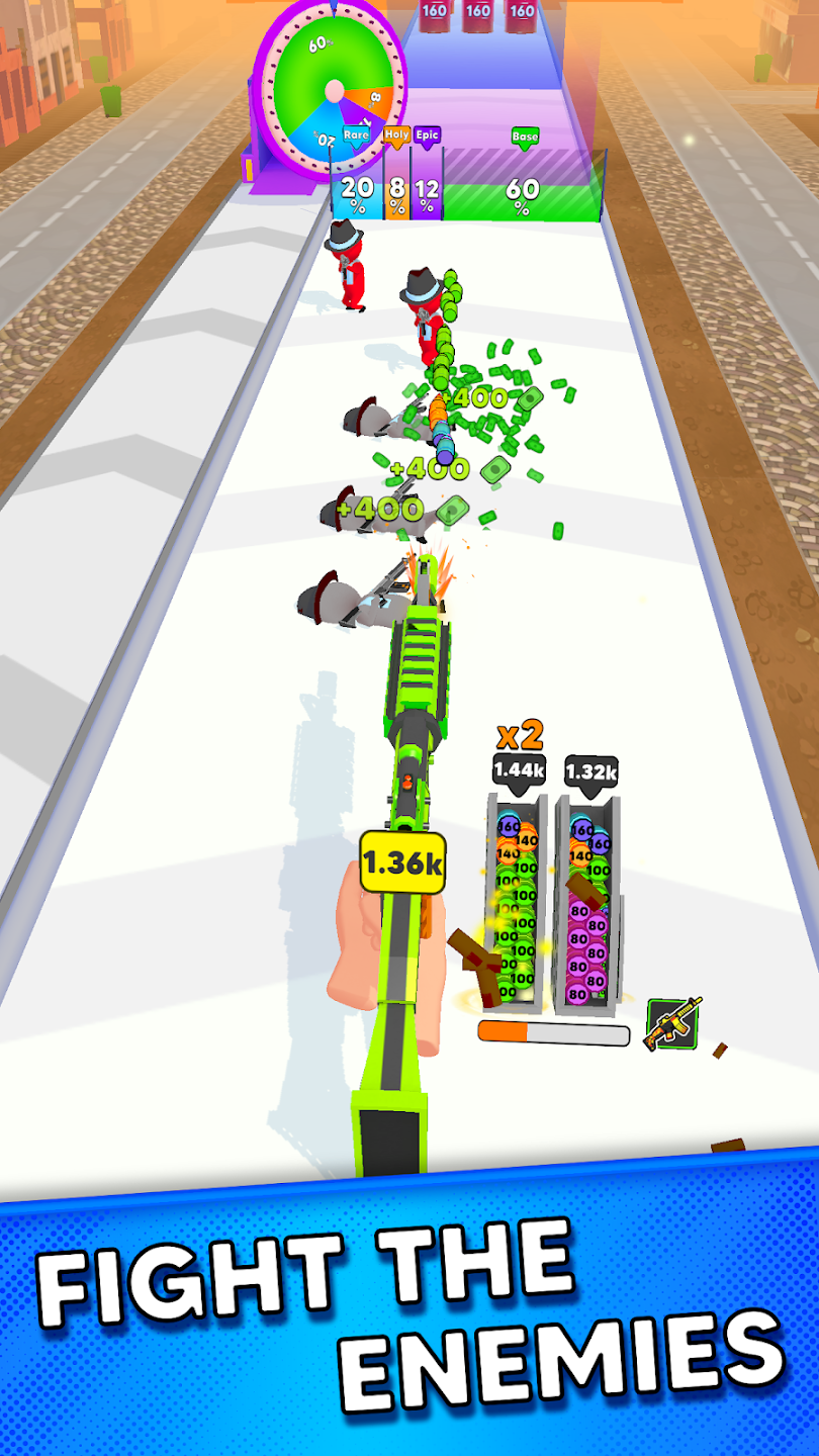 为您的手枪收集杂志,并在途中提高您的射击水平。 还有独特的技能可以将乐趣和爆射模式加倍,甚至三倍。