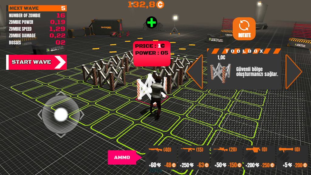 * 僵尸会一波一波地攻击你的领地。在每一波结束时,你可以重建领地,为下一波做好准备。