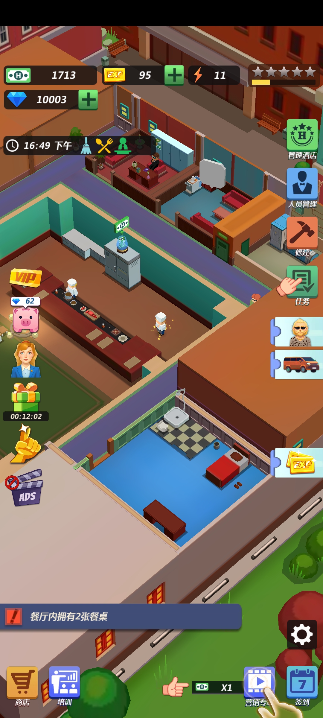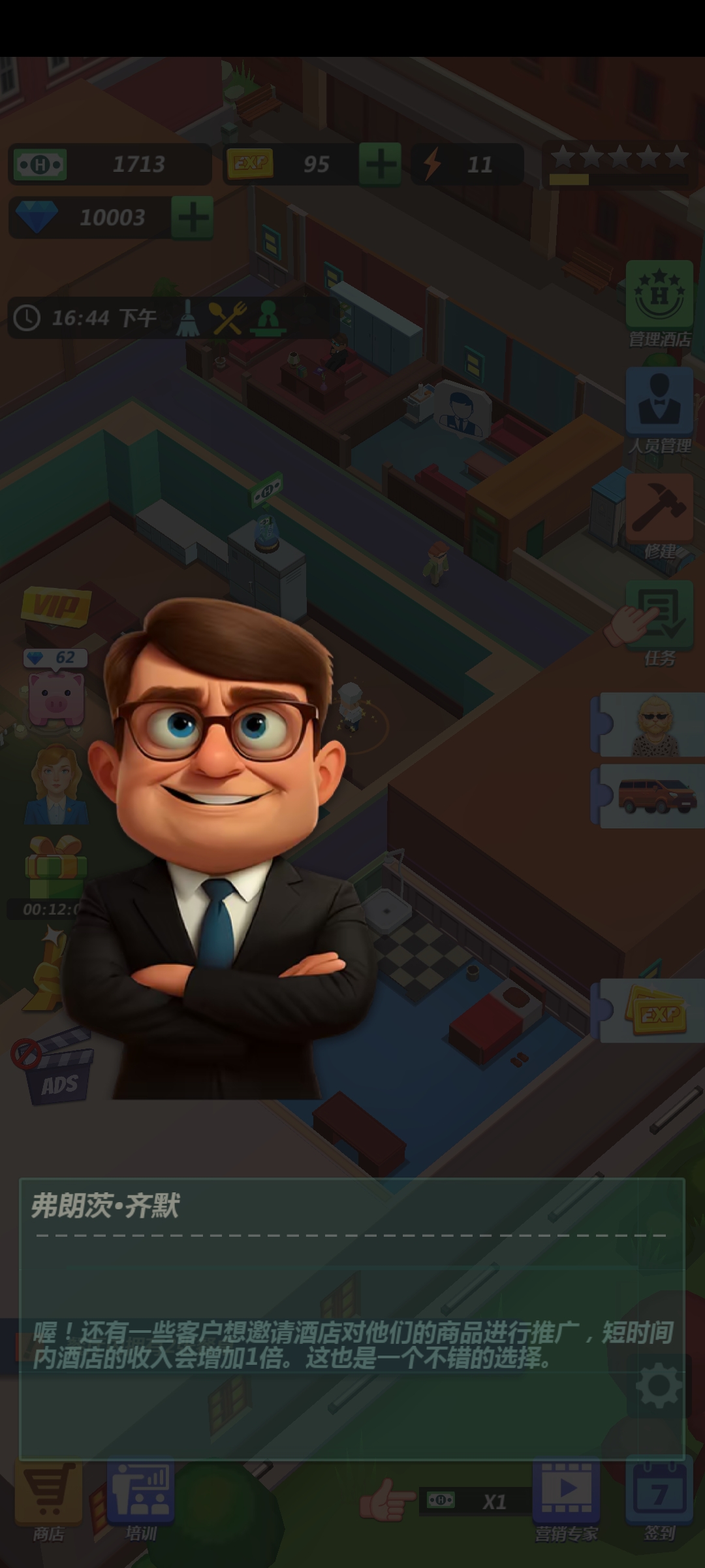 时,沉浸在熙熙攘攘的酒店世界中。利用您的管理技能吸引来自世界各地的客人,确保他们的住宿体验非同寻常。随着您的酒店帝国蓬勃发展,解锁新的和令人兴奋的功能,让您和您的客人都乐在其中。