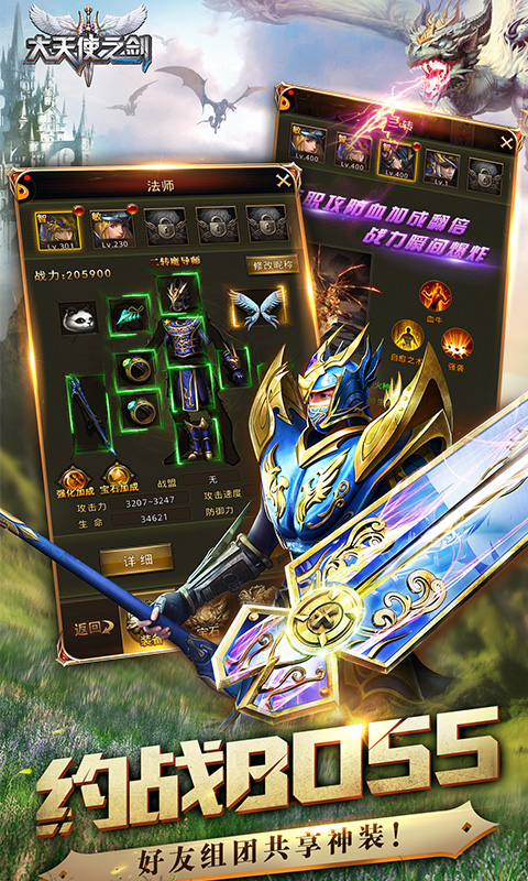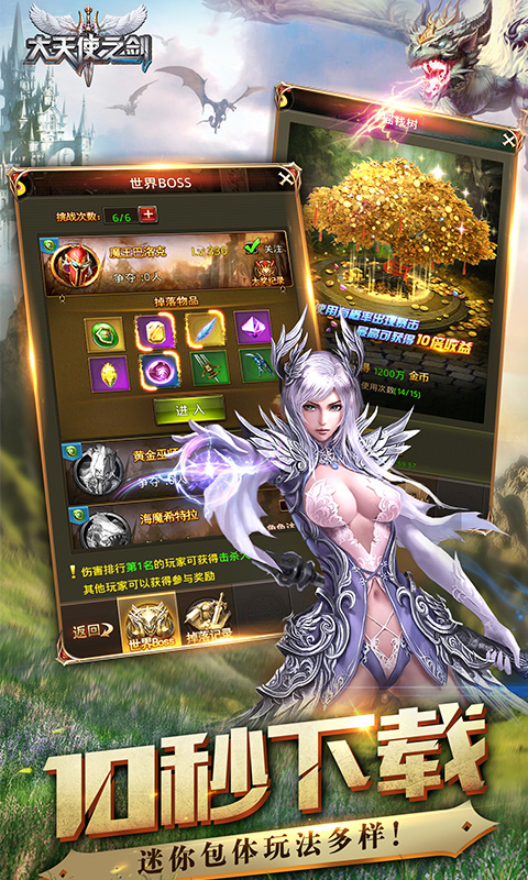 《大天使之剑H5》全面挑战指尖快感,以简洁流畅的操作显著提升游戏体验,并以自由转职转生、经典副本、打BOSS爆卓越套装等玩法高度还原正版奇迹的游戏特色,更有1天200级、挂机团战等惊喜玩法引爆新嗨点,让你仿佛置身那个奇迹的激情岁月!