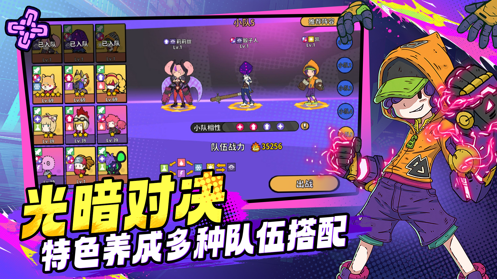 根据不同职业打造属于自己的DIY战队!全新3人场内轮换式战斗,操作简单,养成便捷,各异的技能,不同的职业组合搭配,策略十足!