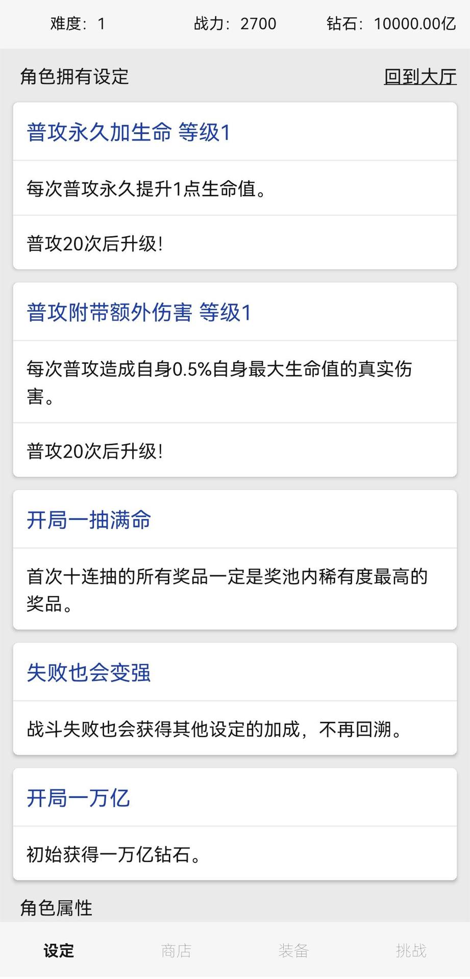 1. 内置【普攻永久加生命】【普攻附带额外伤害】【开局一抽满命】【失败也会变强】【开局一万亿】设定