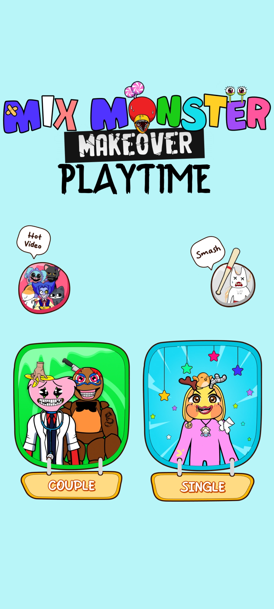 每个身体部位都有最受欢迎的怪物的各种选择。您可以根据自己的喜好选择它们的头、眼睛、嘴巴和身体。创造一对独一无二的怪物情侣。一旦您的怪物情侣完成改造,看着他们在舞池里跳舞度过整个夜晚。让我们一起欣赏惊艳的舞步和流行的音乐。Mix