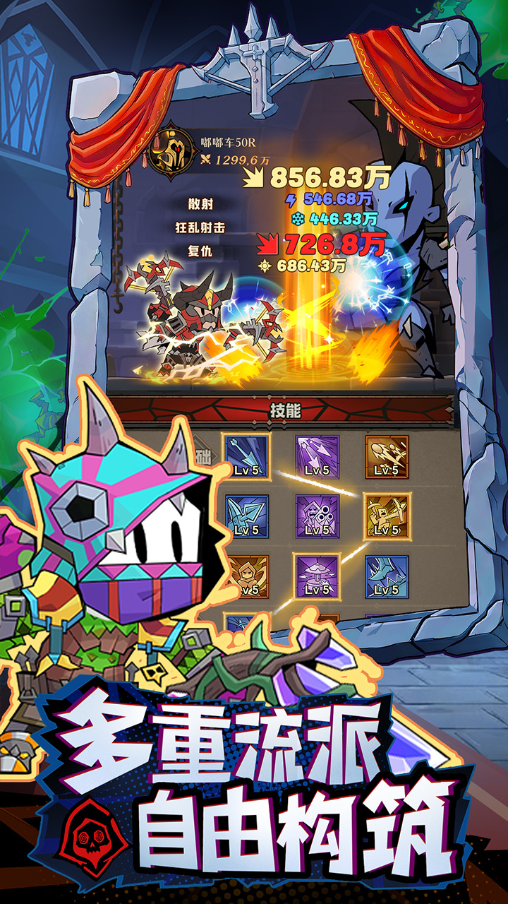 多变的战斗技能和打击反馈,战斗表演简约而生动,不是乏味的站桩体验;构筑成型后伤害跳字炸屏,盯着屏幕发呆都很爽。