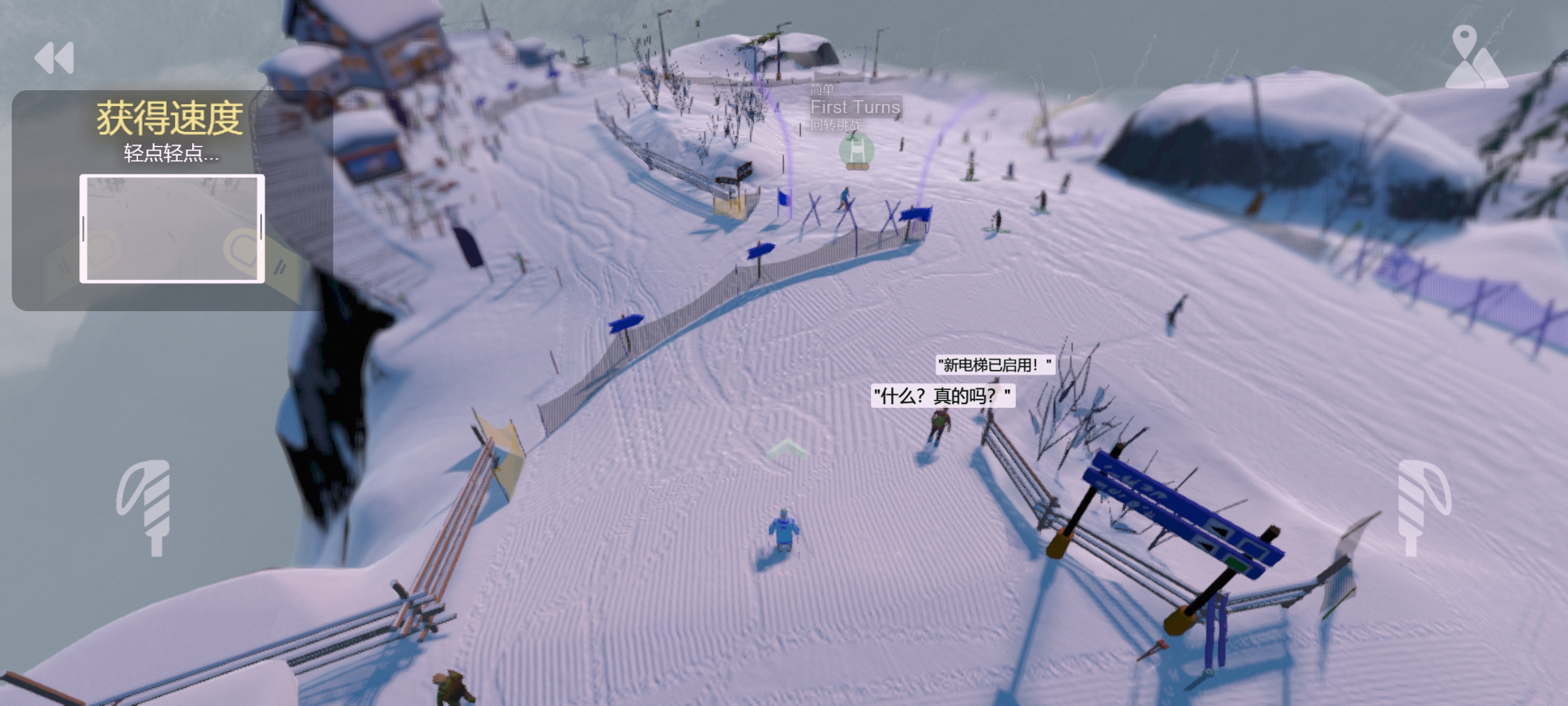 从滑翔伞和高空滑索,到长板滑雪和速度滑雪,山上充满了独特的活动和模式,如 2D 平台游戏和自上而下的滑雪。