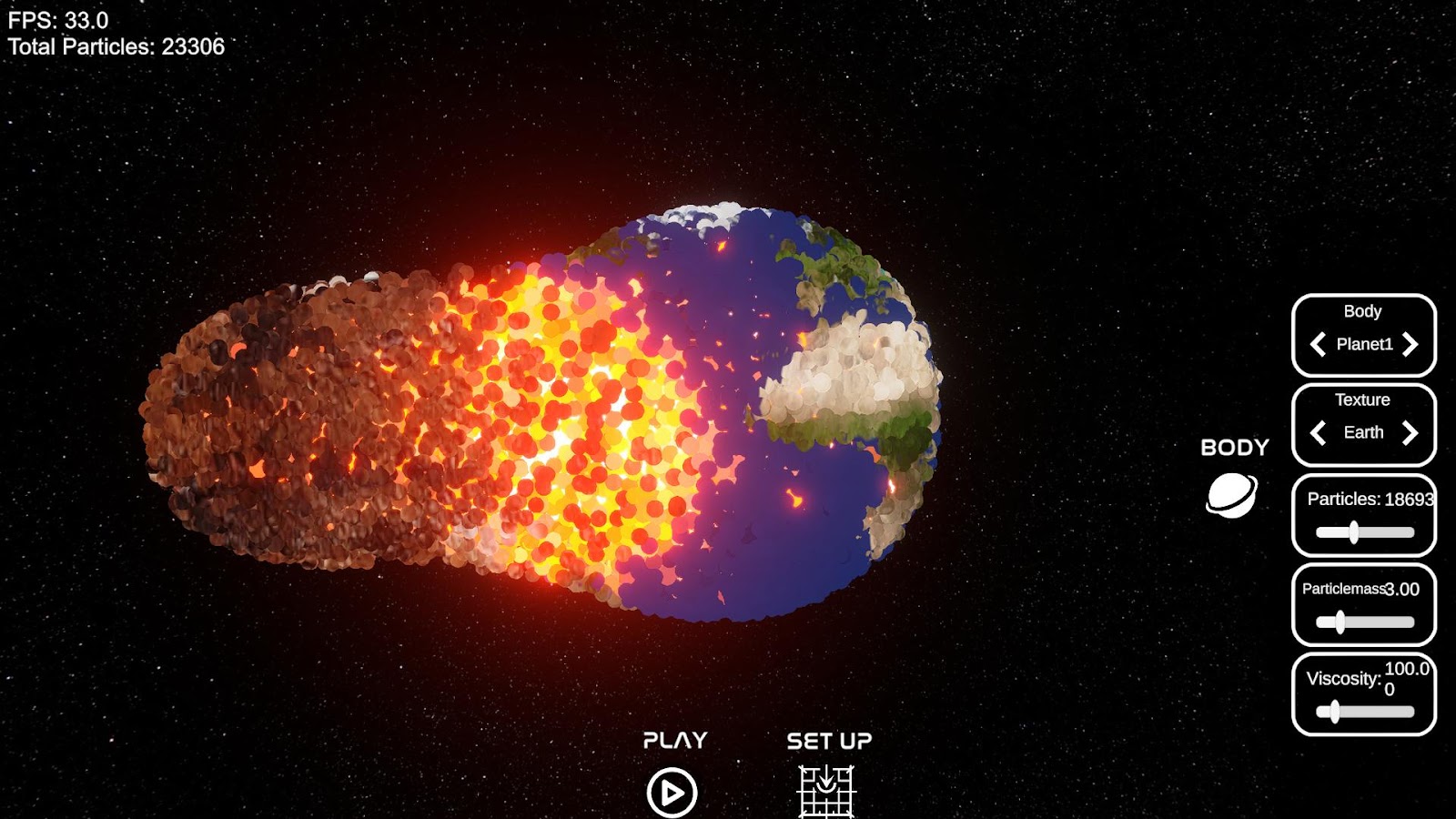 模拟可让您直接跳入高能碰撞或在设置模式中自定义初始条件。调整粒子数、行星速度和碰撞精度等参数,以创建自己的碰撞场景。