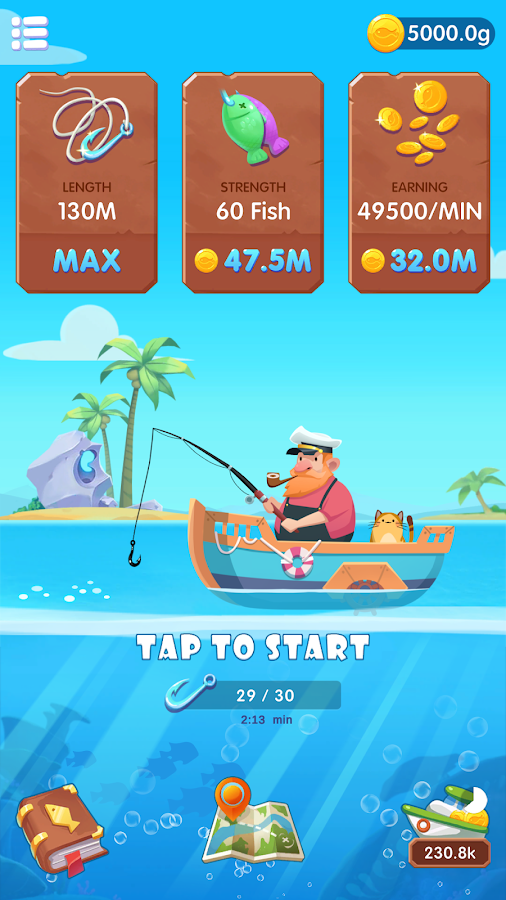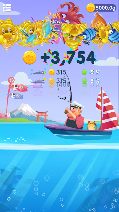钓鱼幻想是一款超棒的钓鱼游戏。探索深海,尽可能多地捕鱼。只需向左/向右滑动即可调整鱼钩,瞄准并捕捉优质鱼以获得更好的奖励。记得升级你的船和钓鱼设备。这些将帮助你走得更远,找到更多的神秘鱼。