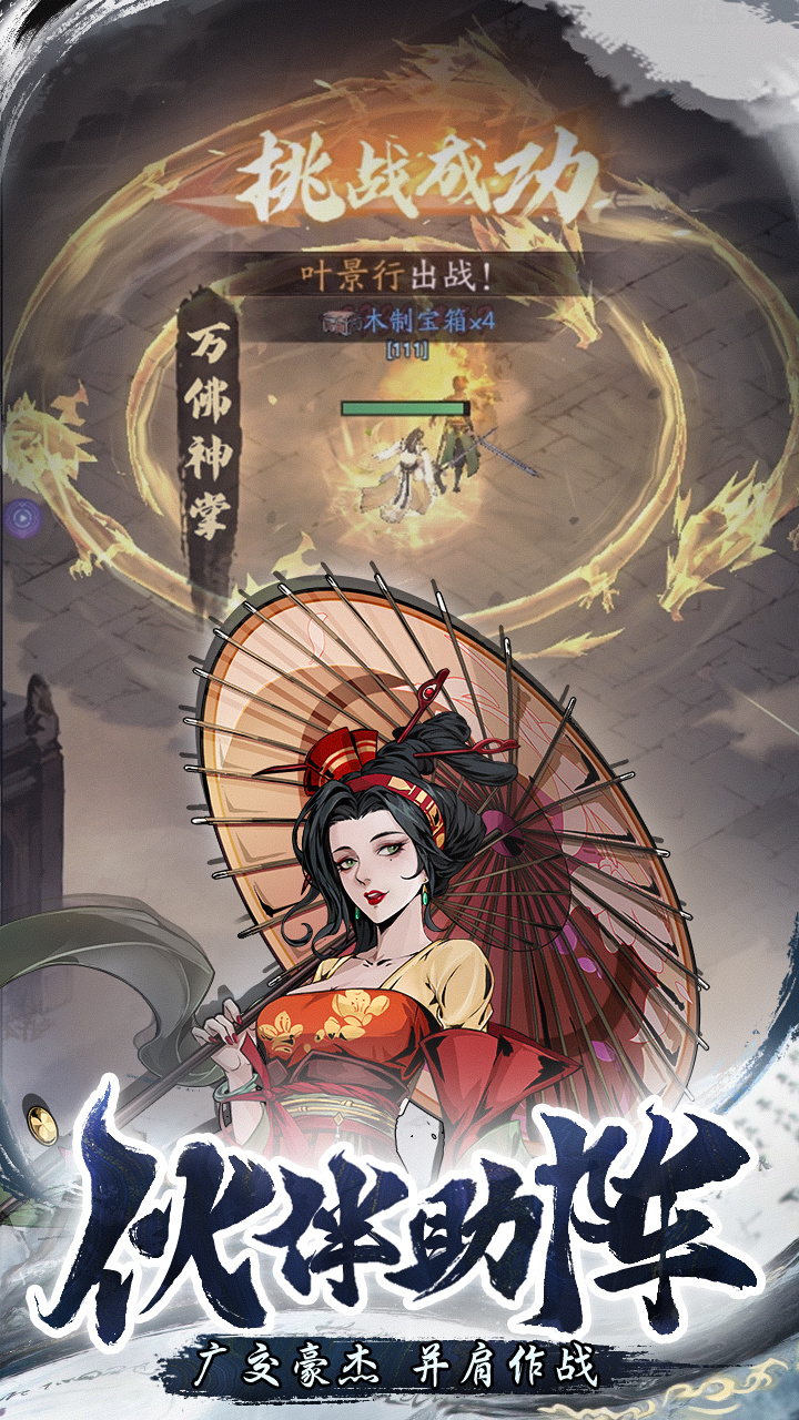 独自一人江湖厮杀太孤独?别担心,强者伙伴来相助,使出独家绝招助你杀敌。巧妙运用不同伙伴的武学特性,能使战斗事半功倍喔~