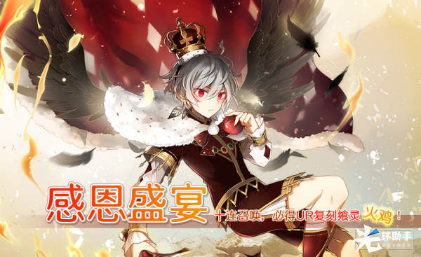 活动期间,御侍大人可在商城使用灵火种与幻晶石购买抽卡道具以及购买道具礼包,使用该道具可在召唤界面进行十连,每一次十连必得UR复刻飨灵-火鸡,该卡池只可抽取10次十连。