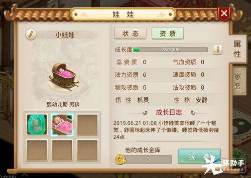今天这堂育儿课就上到这里了,最后总结一下重点:娃娃的资质属性包含物攻、法攻、气血、速度、法力,幼儿期的行程安排将影响娃娃进入儿童时期的资质,所以想要娃娃资质好的道友们,趁TA在幼年期就抓紧行动吧!