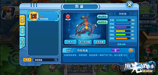 烈咬陆鲨的种族值总和高达600,按照传统划分属于准神兽级精灵,再加上拥有Mega形态可谓是潜力十足。在战斗风格方面,130的物攻配合102的速度让烈咬陆鲨的物理输出能力堪称顶尖,并且面对大部分精灵都能拥有先手优势。
