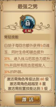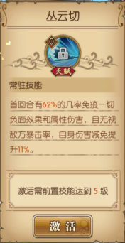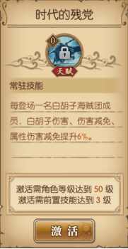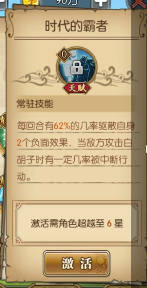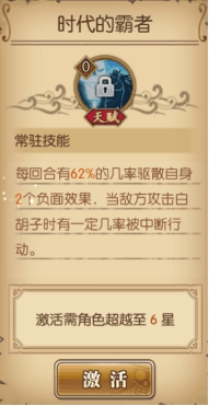 一回合无视所有技能控制效果与属性伤害与暴击,绝对是一号位的人物,强,硬,可以说老爹是带头大哥啊5级天赋:时代的霸者